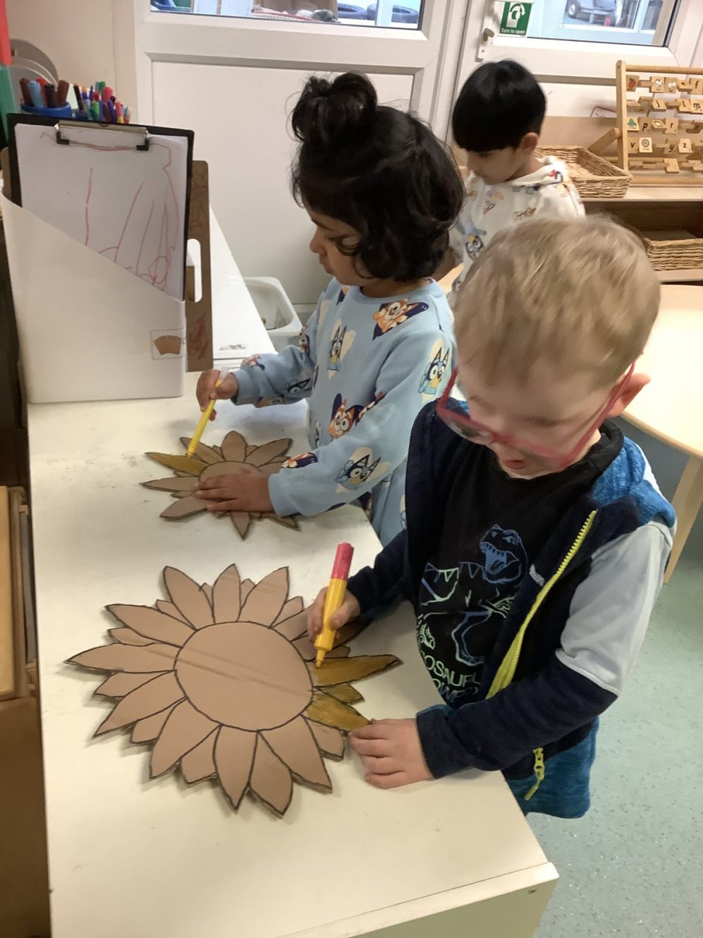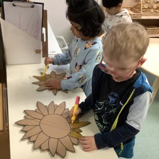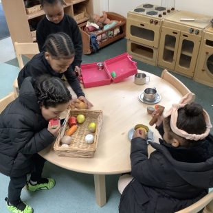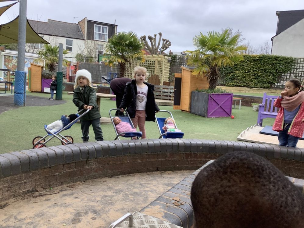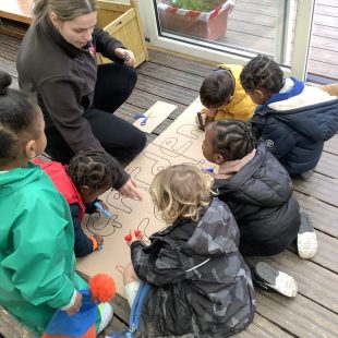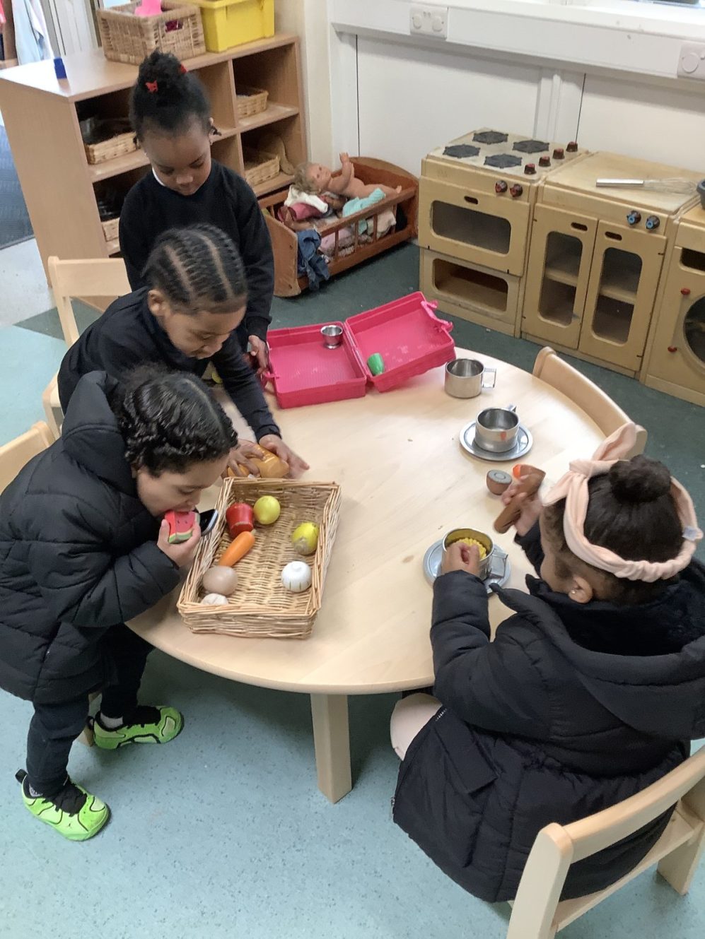 Role play scientists took to the garden as spring knocked on the door with some sun and mild weather. Komodo dragons were marauding and angry hippos baring their teeth in warning as the scientists “observed” the animals. The children tried to keep their distance from the dangerous creatures; counting them and recording their diets and whether they had babies.  Many children can explain how Komodo dragons smell, and tell you why the hippos appear to yawn…even though they are very far from being sleepy!