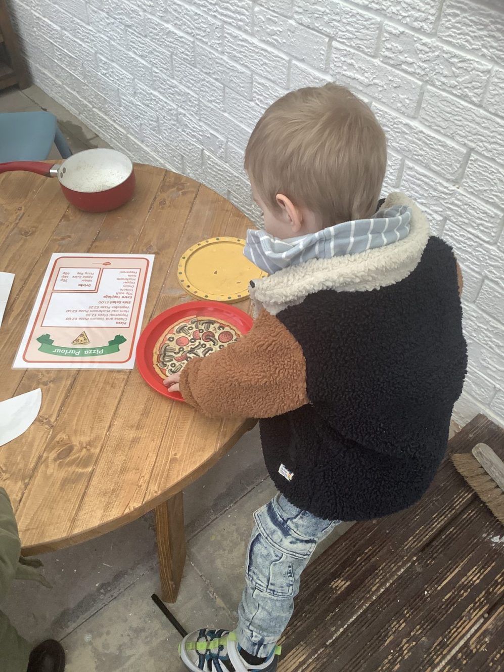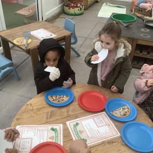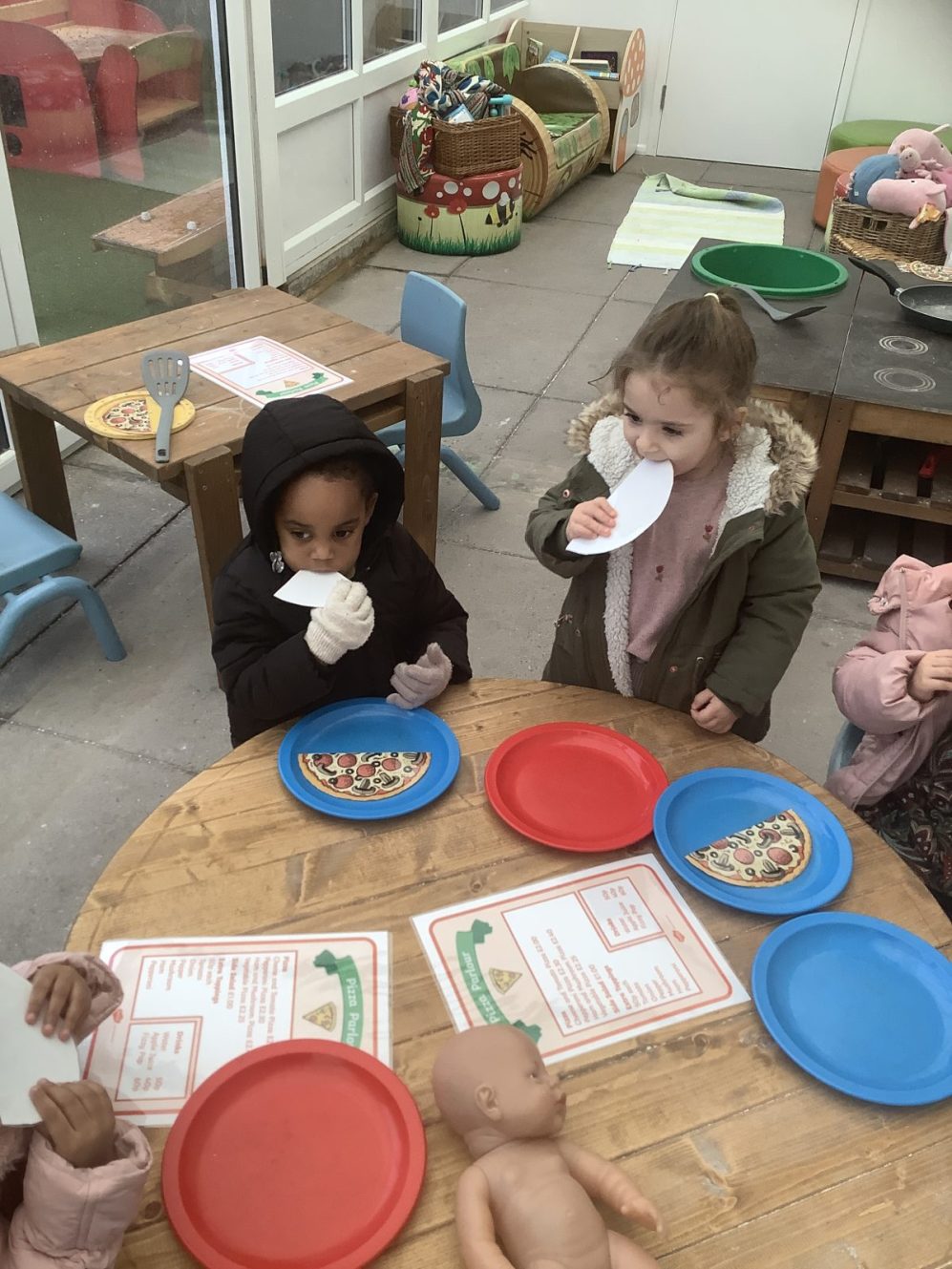 In addition, the children have really enjoyed a role-play area set up as a pizza parlour. They have taken on roles such as customer, chef, and waitress, which has helped develop their language, early maths, and mark-making skills. The children practiced handling money, taking orders, and communicating with one another. To finish the week, the children will be making pizzas again, giving them even more opportunities to learn through fun, meaningful play.