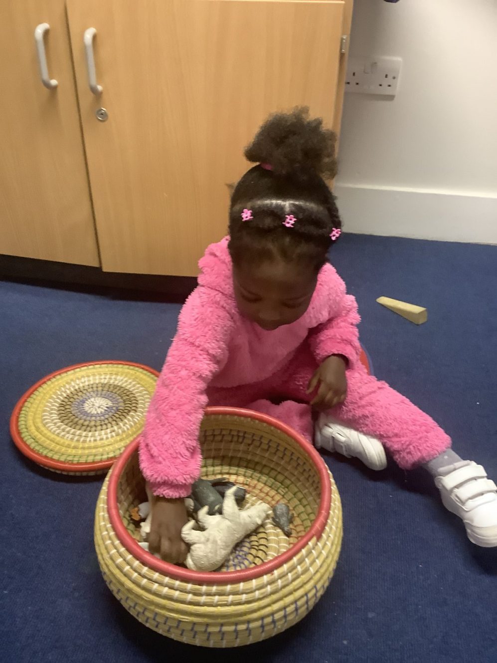A treasure basket containing the animals was introduced, supporting the children’s understanding of number, size, and early mathematical concepts. It has been a very busy and exciting time, and the children have learned so much through hands-on experiences.