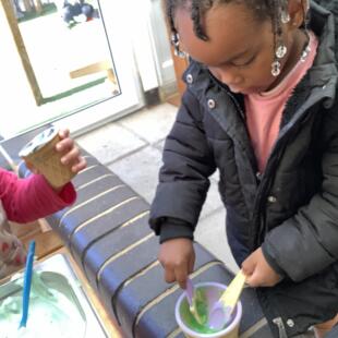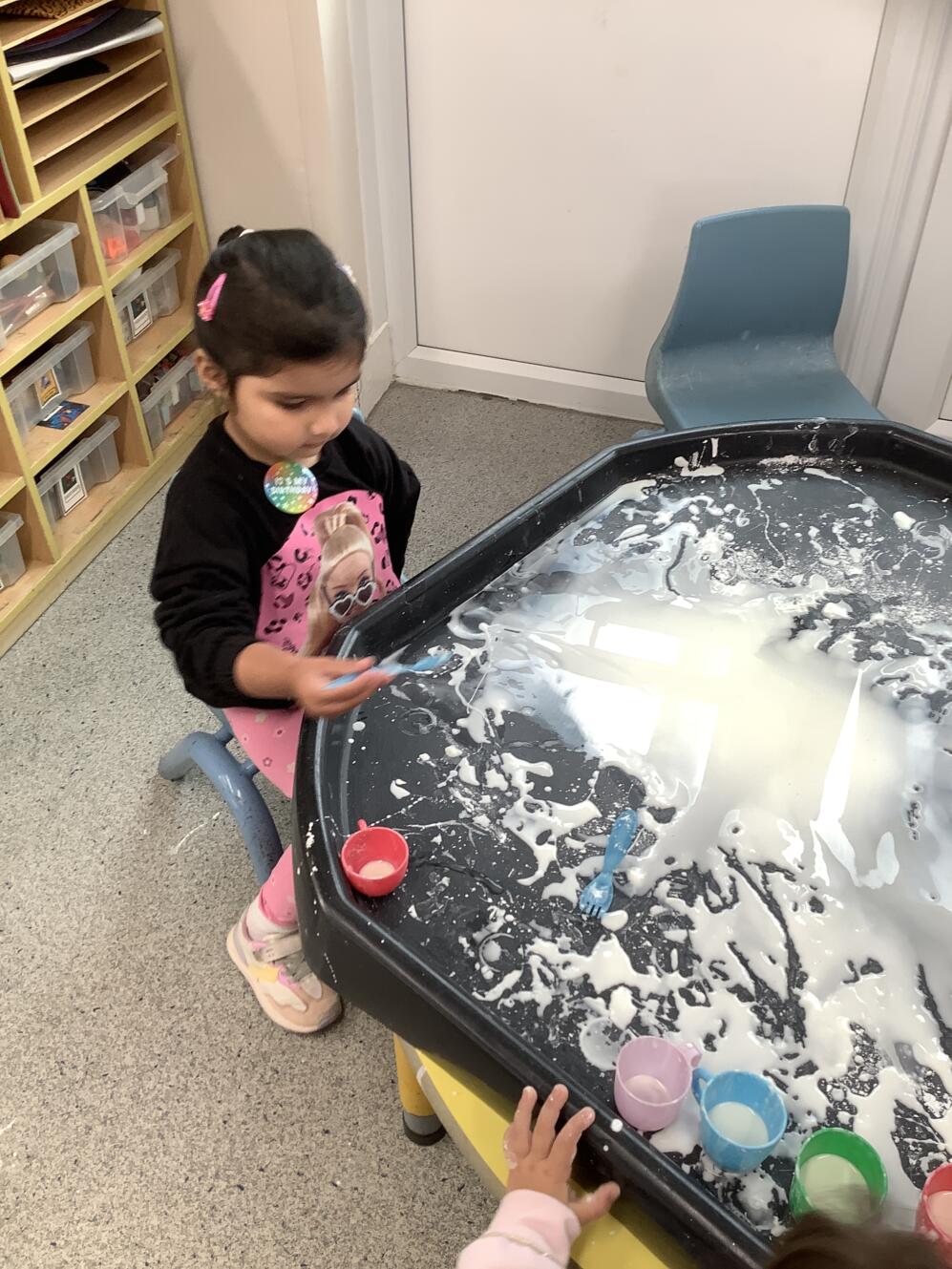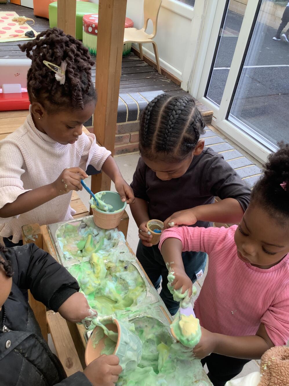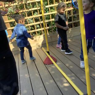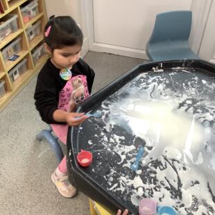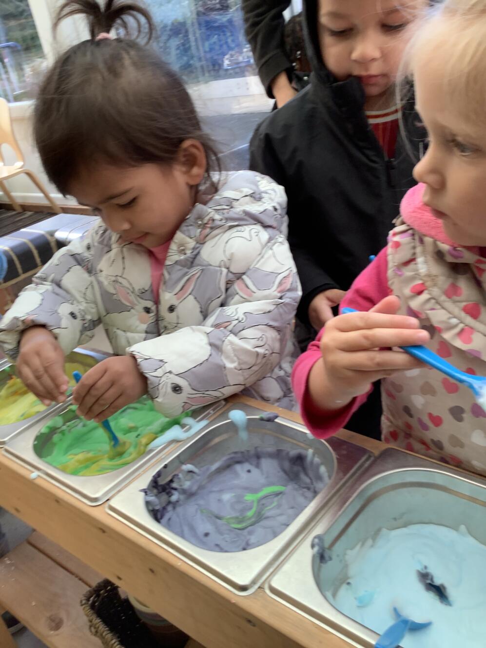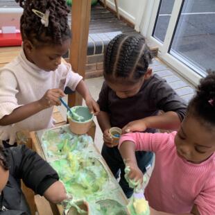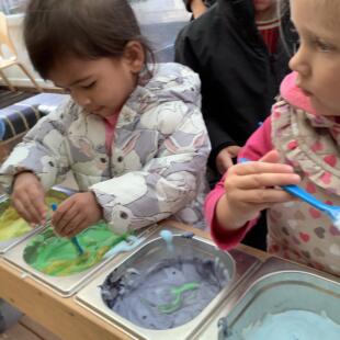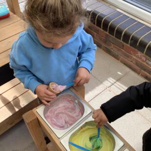 The children have had lots of opportunities to explore their environment physically whilst using their senses. We have been climbing, hitting balls with bats and spinning hoops. Our lovely sports coach Debbie was teaching the children limbo this week and they had lots of fun trying this. The children had to move their bodies different ways and use their problem-solving skills to move under or over the pole. They have also had lots of different messy play and have enjoyed exploring the different textures.