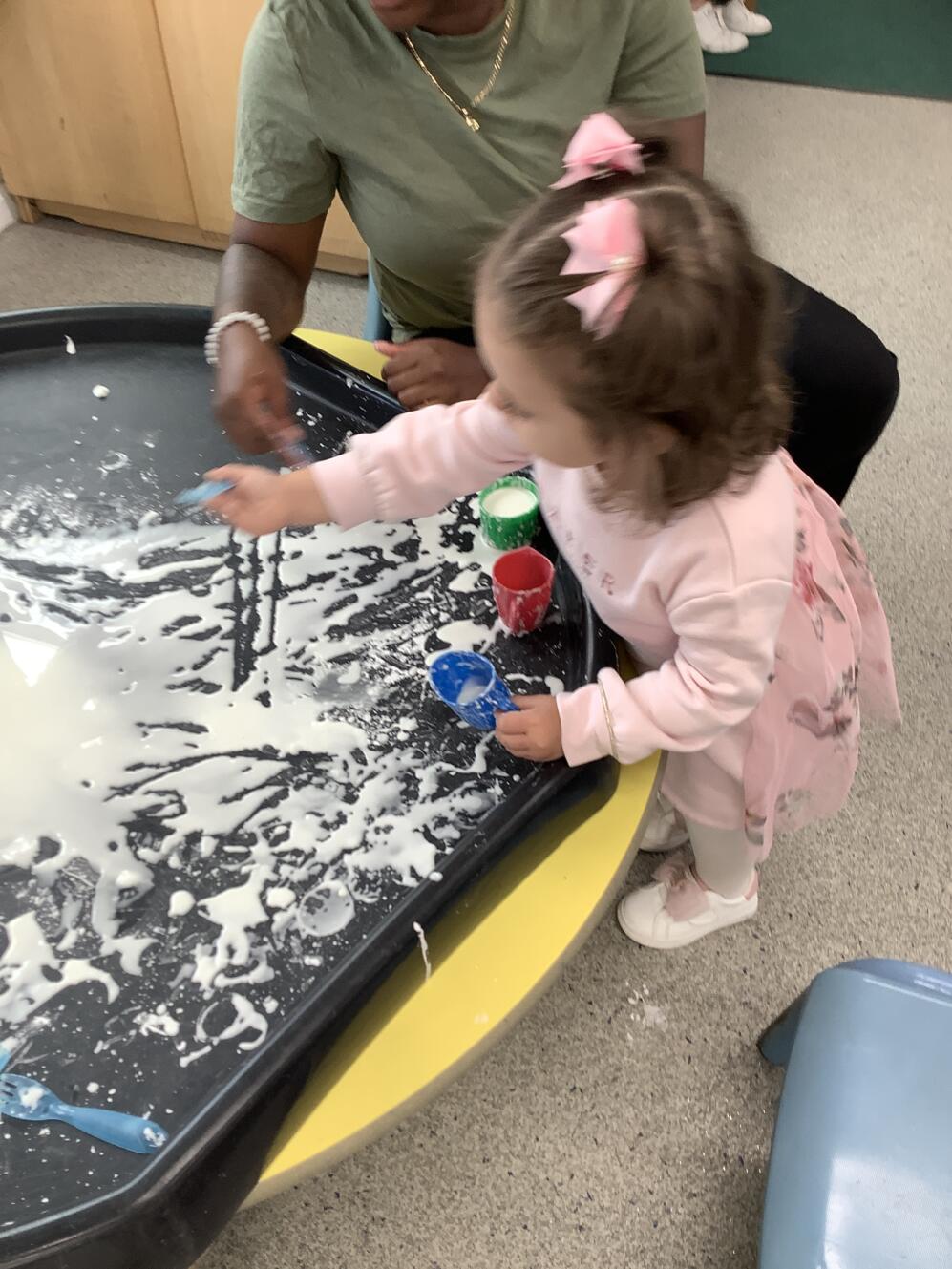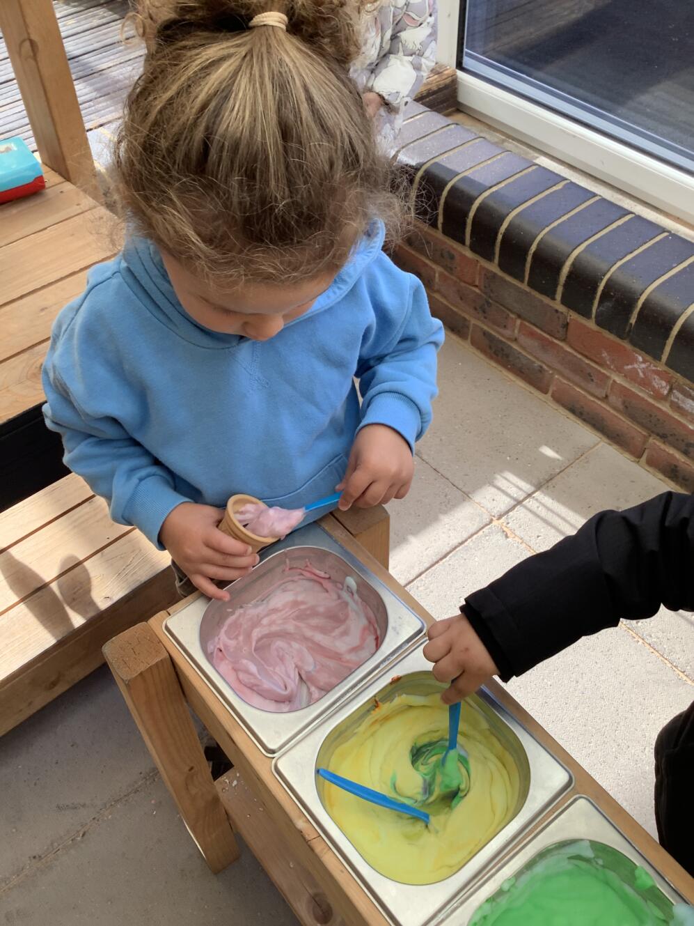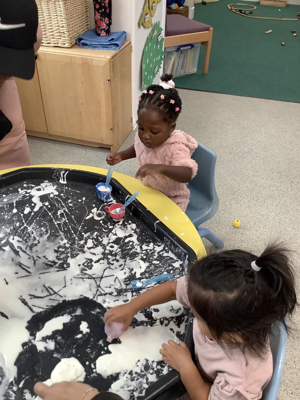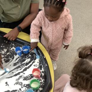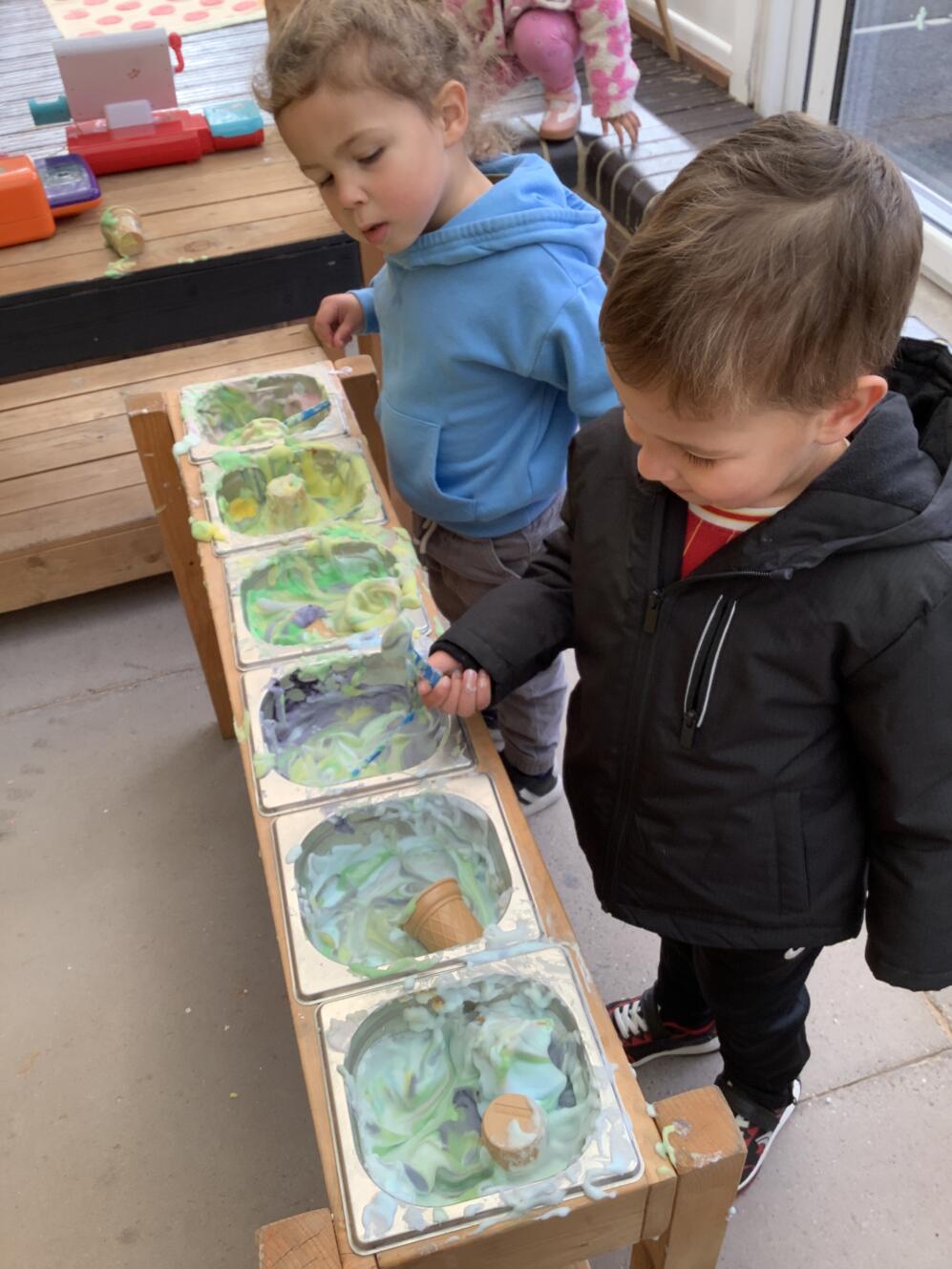 The children have had lots of opportunities to explore their environment physically whilst using their senses. We have been climbing, hitting balls with bats and spinning hoops. Our lovely sports coach Debbie was teaching the children limbo this week and they had lots of fun trying this. The children had to move their bodies different ways and use their problem-solving skills to move under or over the pole. They have also had lots of different messy play and have enjoyed exploring the different textures.