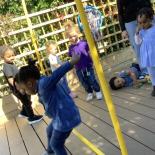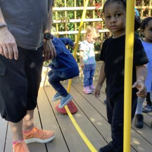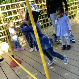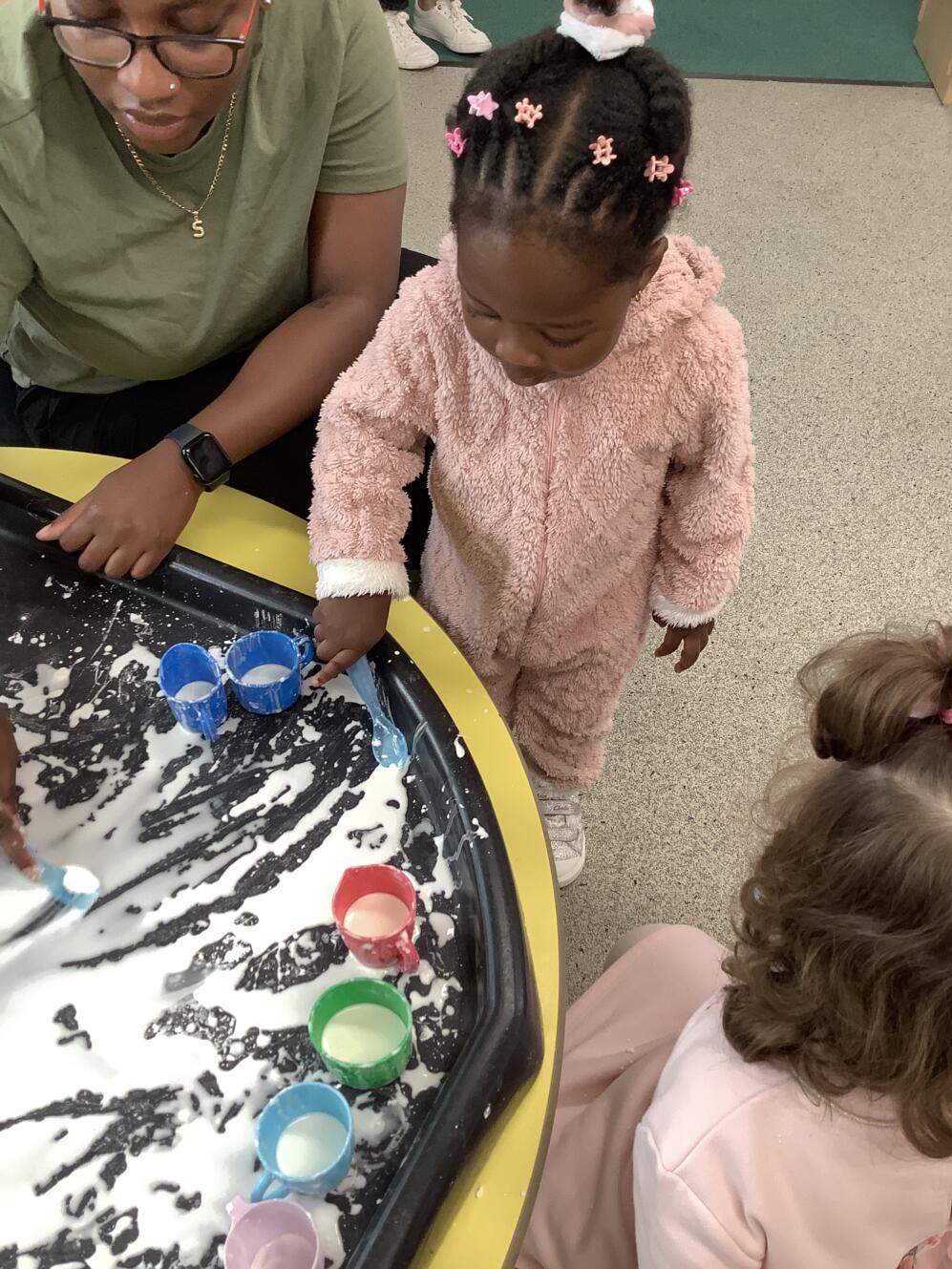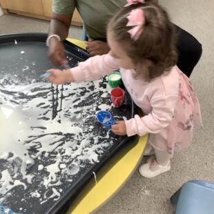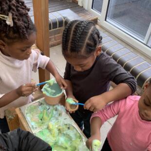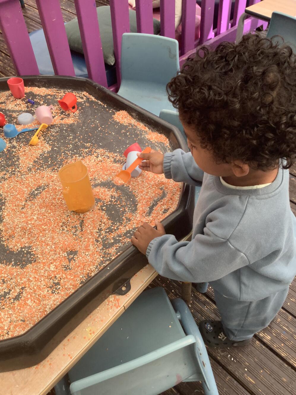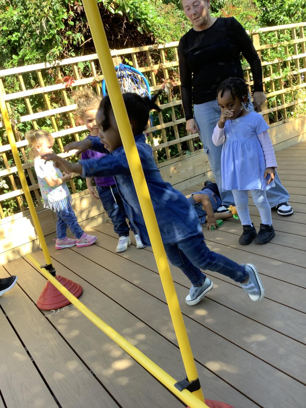 The children have had lots of opportunities to explore their environment physically whilst using their senses. We have been climbing, hitting balls with bats and spinning hoops. Our lovely sports coach Debbie was teaching the children limbo this week and they had lots of fun trying this. The children had to move their bodies different ways and use their problem-solving skills to move under or over the pole. They have also had lots of different messy play and have enjoyed exploring the different textures.