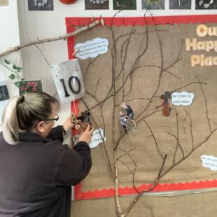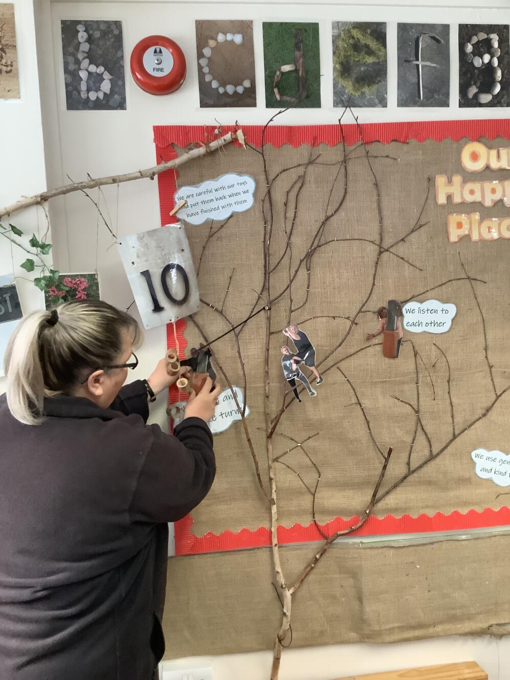 Our happy tree display has been put together once more, featuring the whole of our community the tree references they way we keep our nursery a happy place full of adventure and fun!