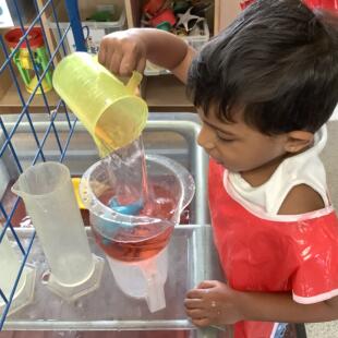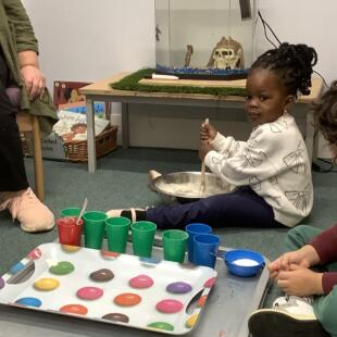 Emma and the children created a small world car wash as our new friends have continued to master the art of independent paint pouring, blending and application!