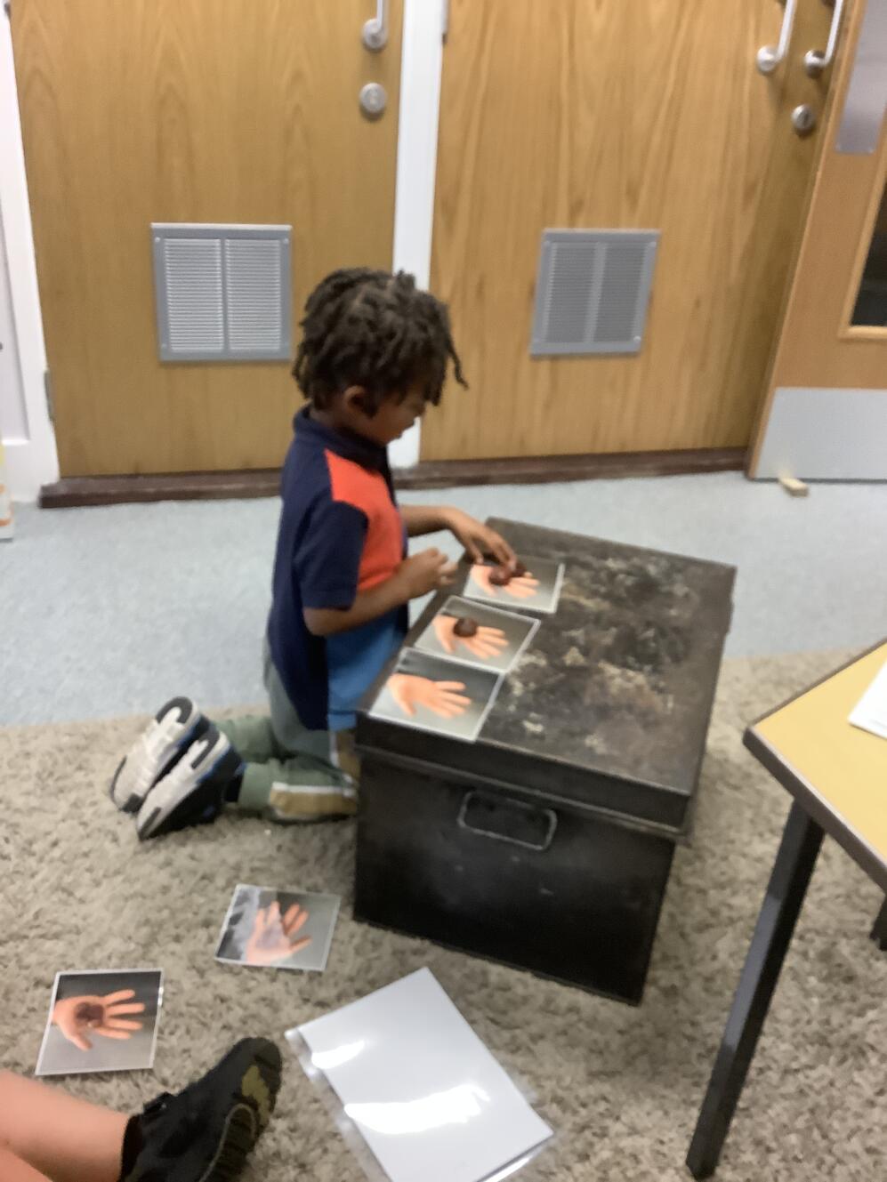 This treasure chest session has been devised to pique the children’s interest and intrigue. Providing an open experience led by the children, but guided by specifically chosen collections, patterns, numerical tools, and the children’s key worker. Not simply a mathematical experience, but one of discovery, questioning and reflection through both experience and language.
