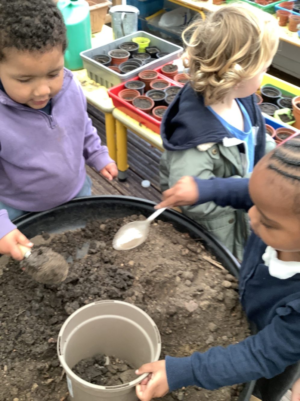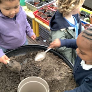 As the term came to a close, the “tricked” beans were planted by the children who have closely observed their germination and development. Will we return to Nursery in two weeks to find bean stalks rising to the clouds?