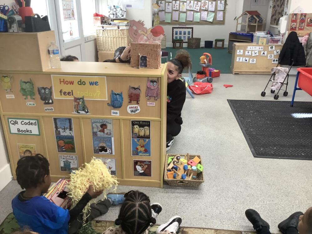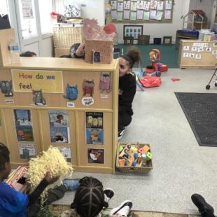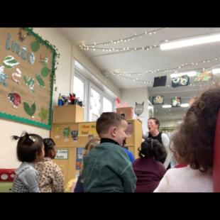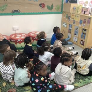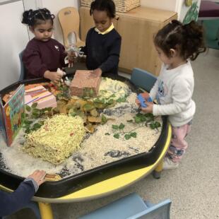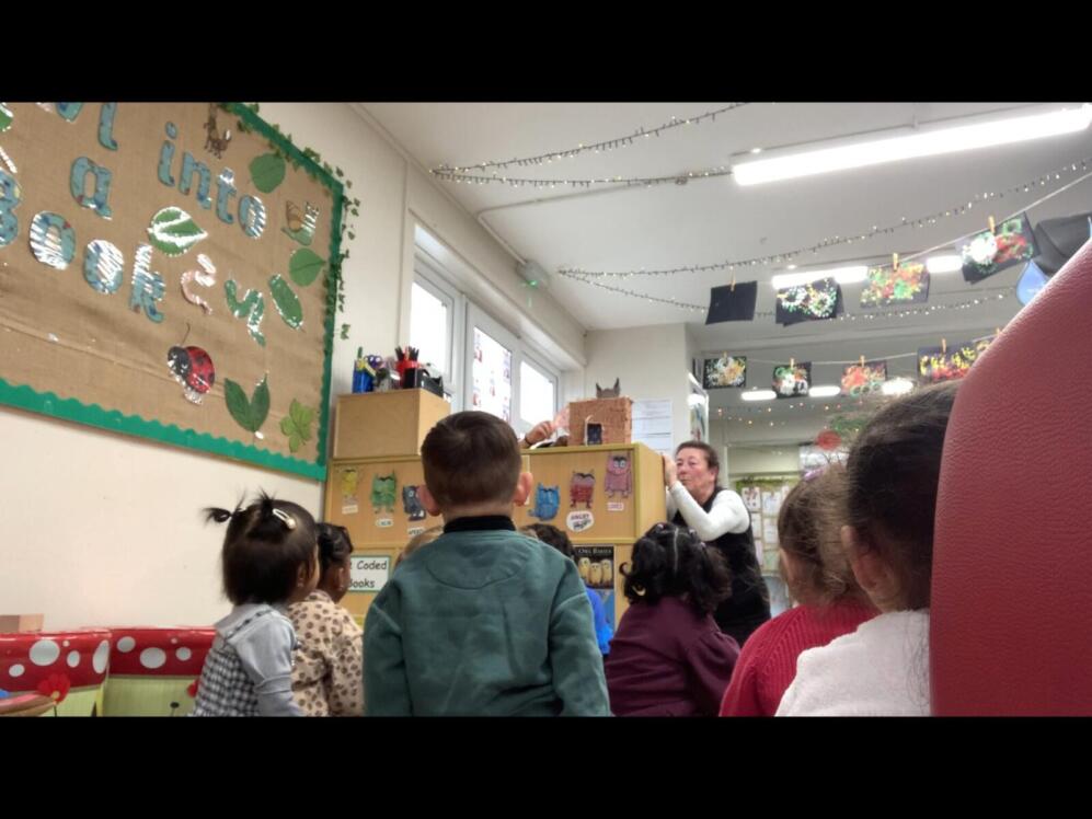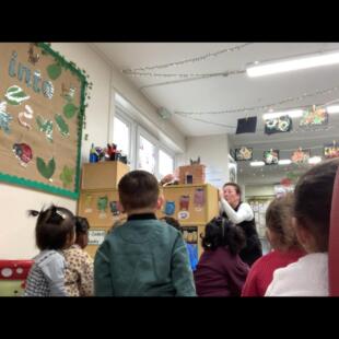 To conclude the fortnight, the adults performed a puppet show using props from the story. The children listened attentively and thoroughly enjoyed the performance. They then used the puppets to re-enact the story, many of them remembered and used key words from the story in their re-enactment.