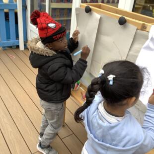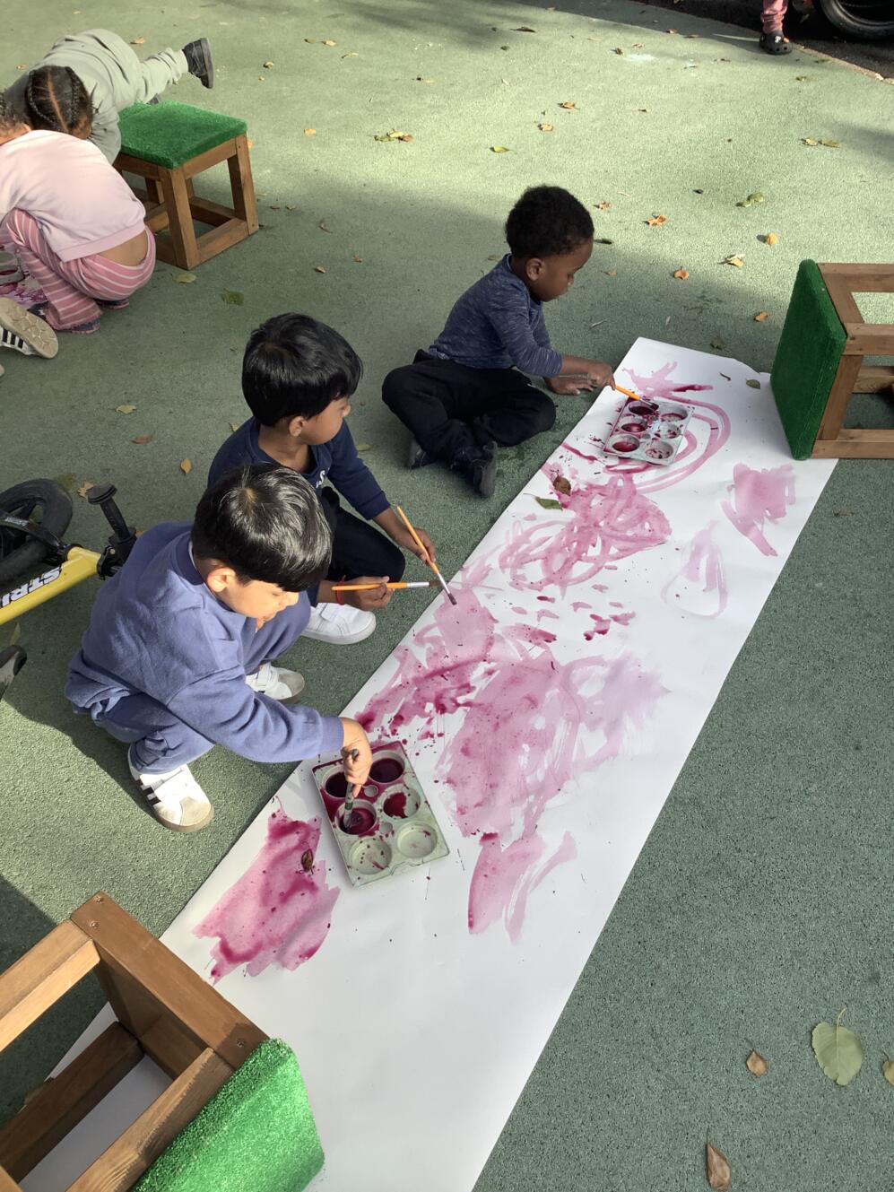 This week, the children were making their marks as always; from glue and glitter fireworks to beetroot juice patterns.