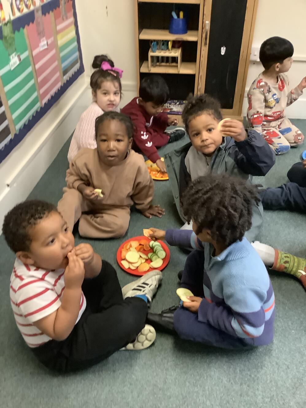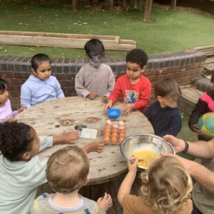 Yusuf and his mum made a special delivery to Nursery on Tuesday…15 fresh eggs laid by the two hens adopted by Yusuf’s family from our living eggs experience. These became a delightful part of our snack time as the children prepared and enjoyed the eggs on Friday.