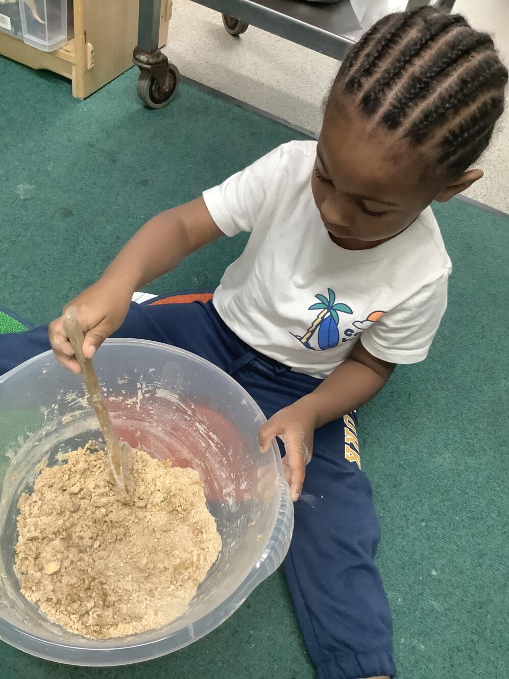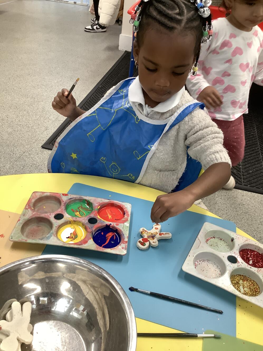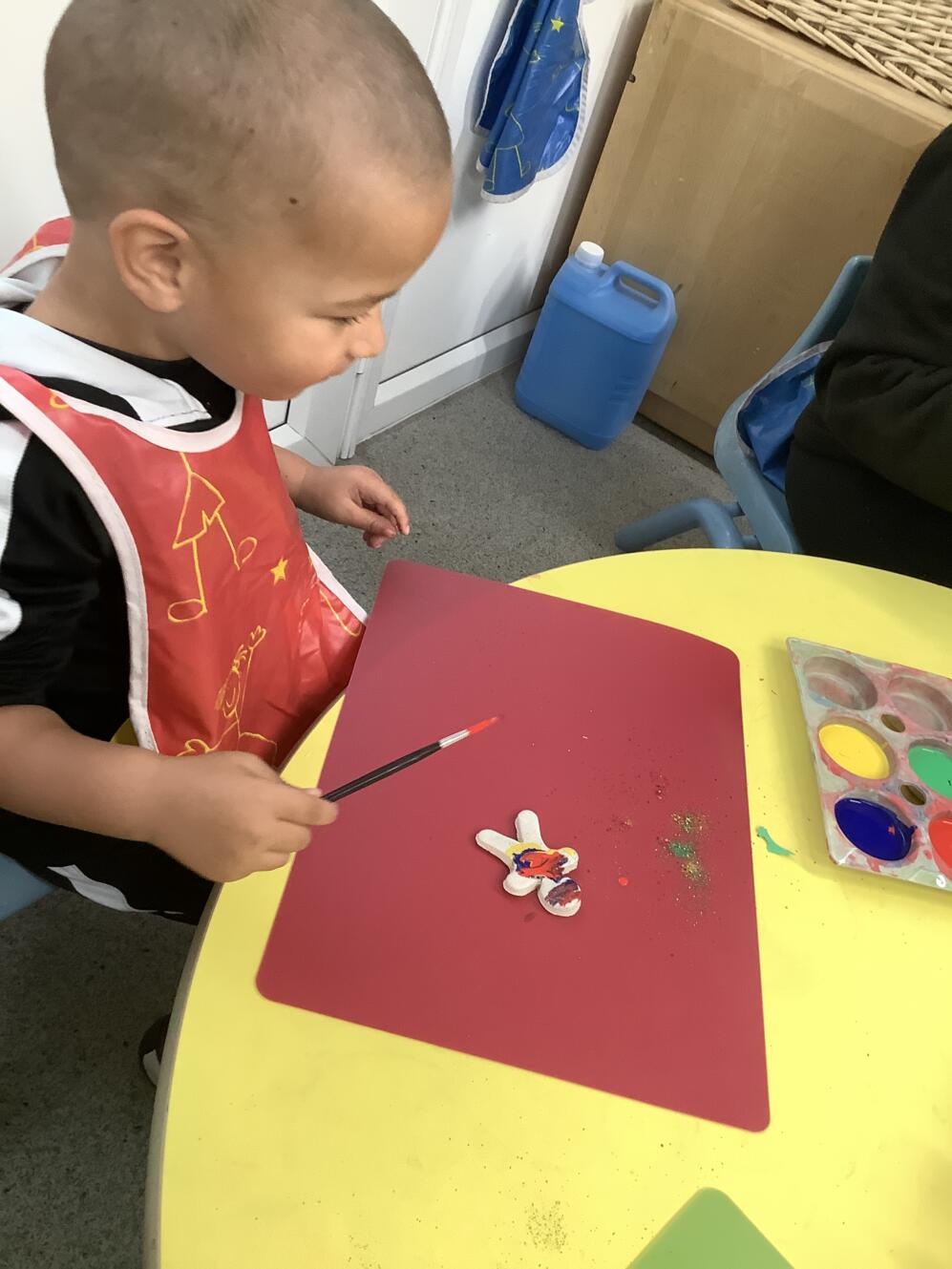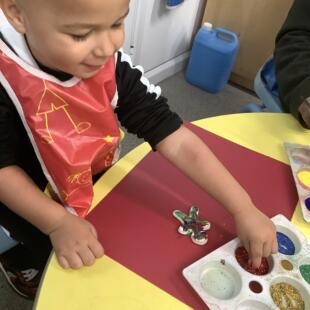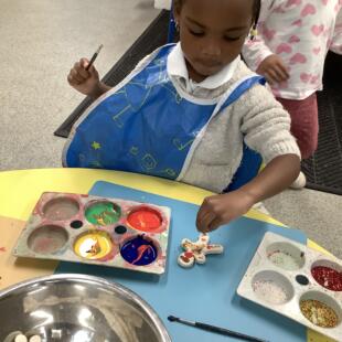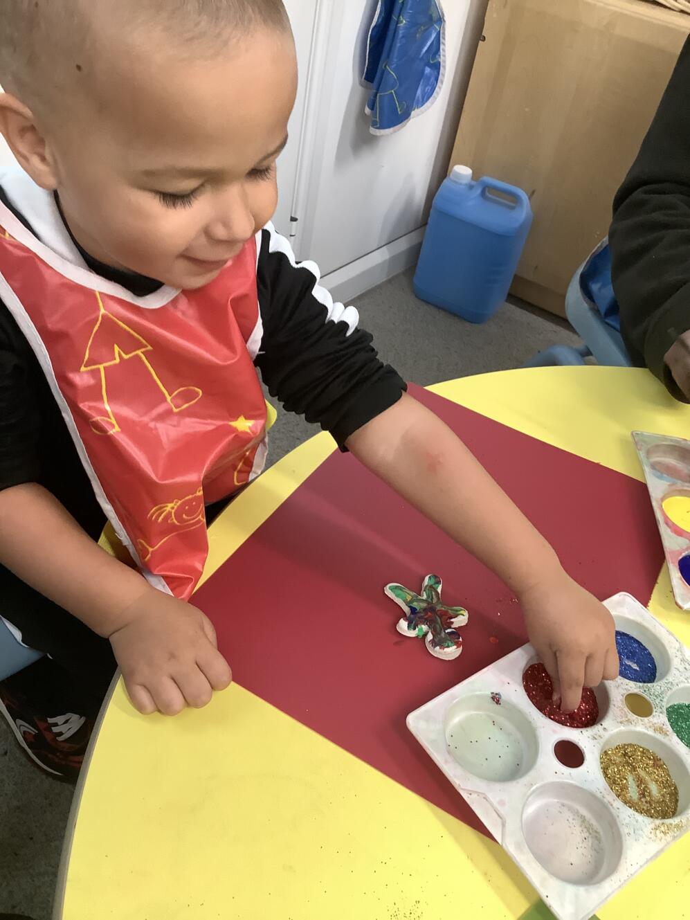 This week, the children decorated their salt dough ginger bread men, choosing from a selection of paints and glitter. We have also made our ginger bread biscuits this week. The children had to really focus, and were supported to complete these tricky tasks with some fantastic results for snack time!