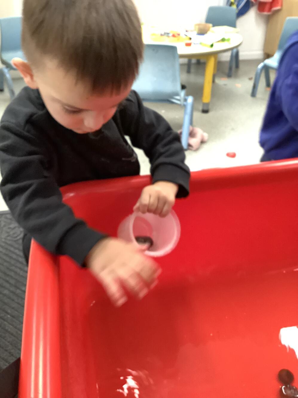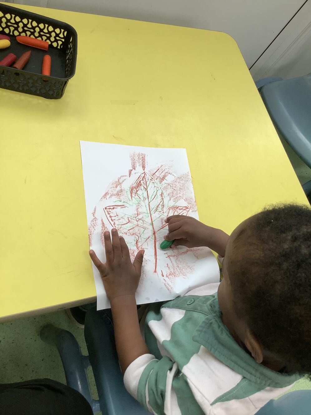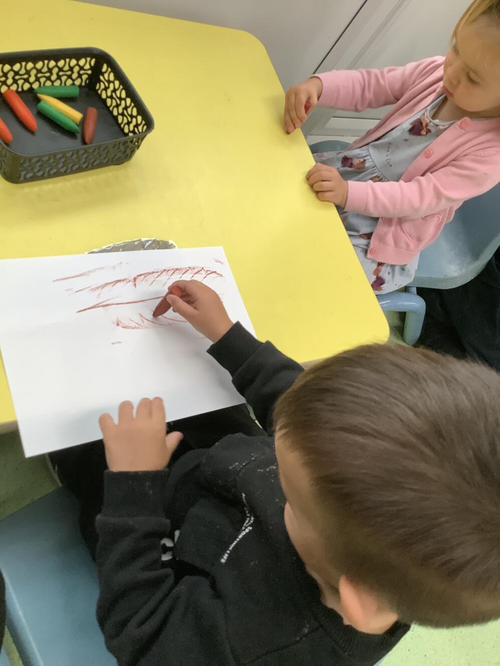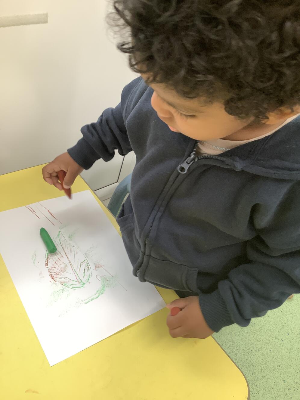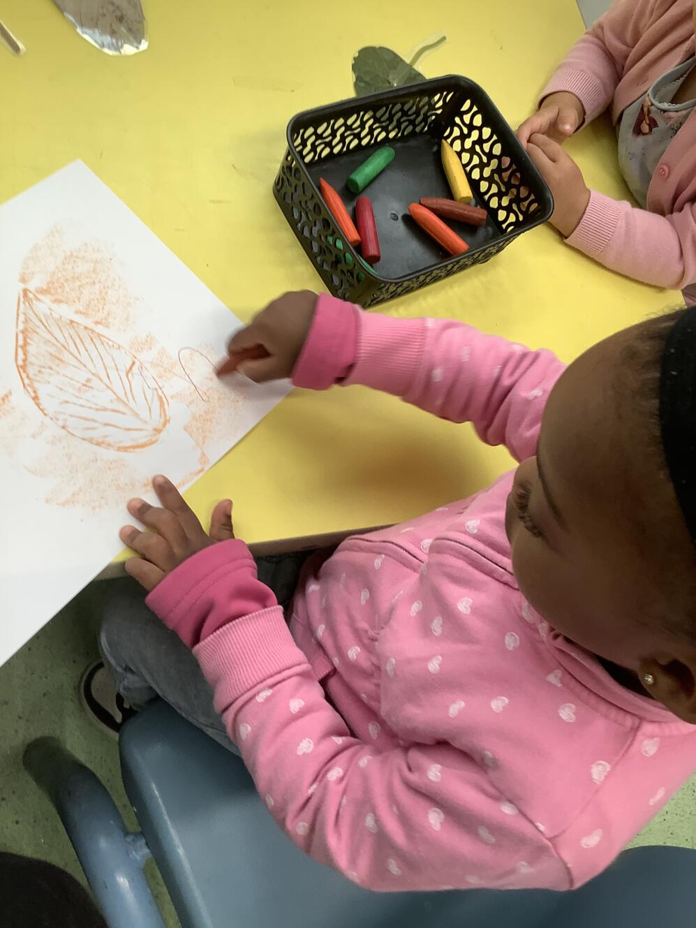 This week, Ladybird class have been exploring the natural materials that have been brought in by the parents. They have had the opportunity explore the different textures they could feel on fir cones, acorns and conkers. This has enriched the language within the setting, with lots of new vocabulary as the materials were named and described by both the children and the educators. We used the conkers in the water play, observing and using the language around sinking and floating. We also gathered several different leaves from the garden using wax crayons and paper to create rubbings which turned out amazingly.