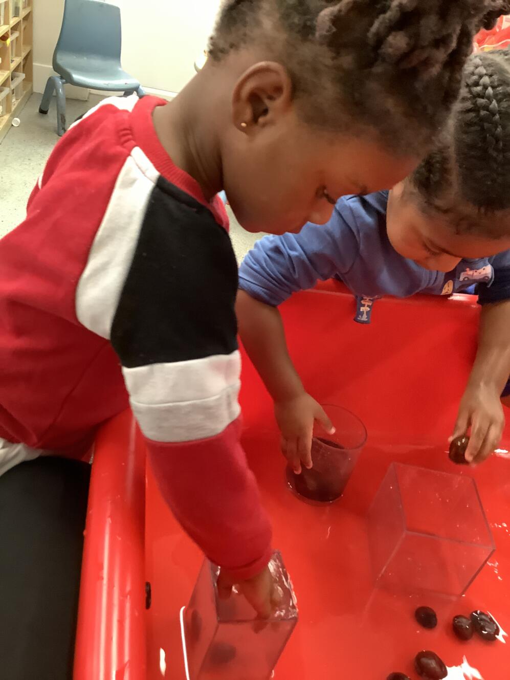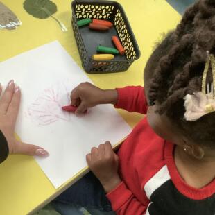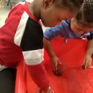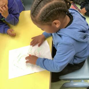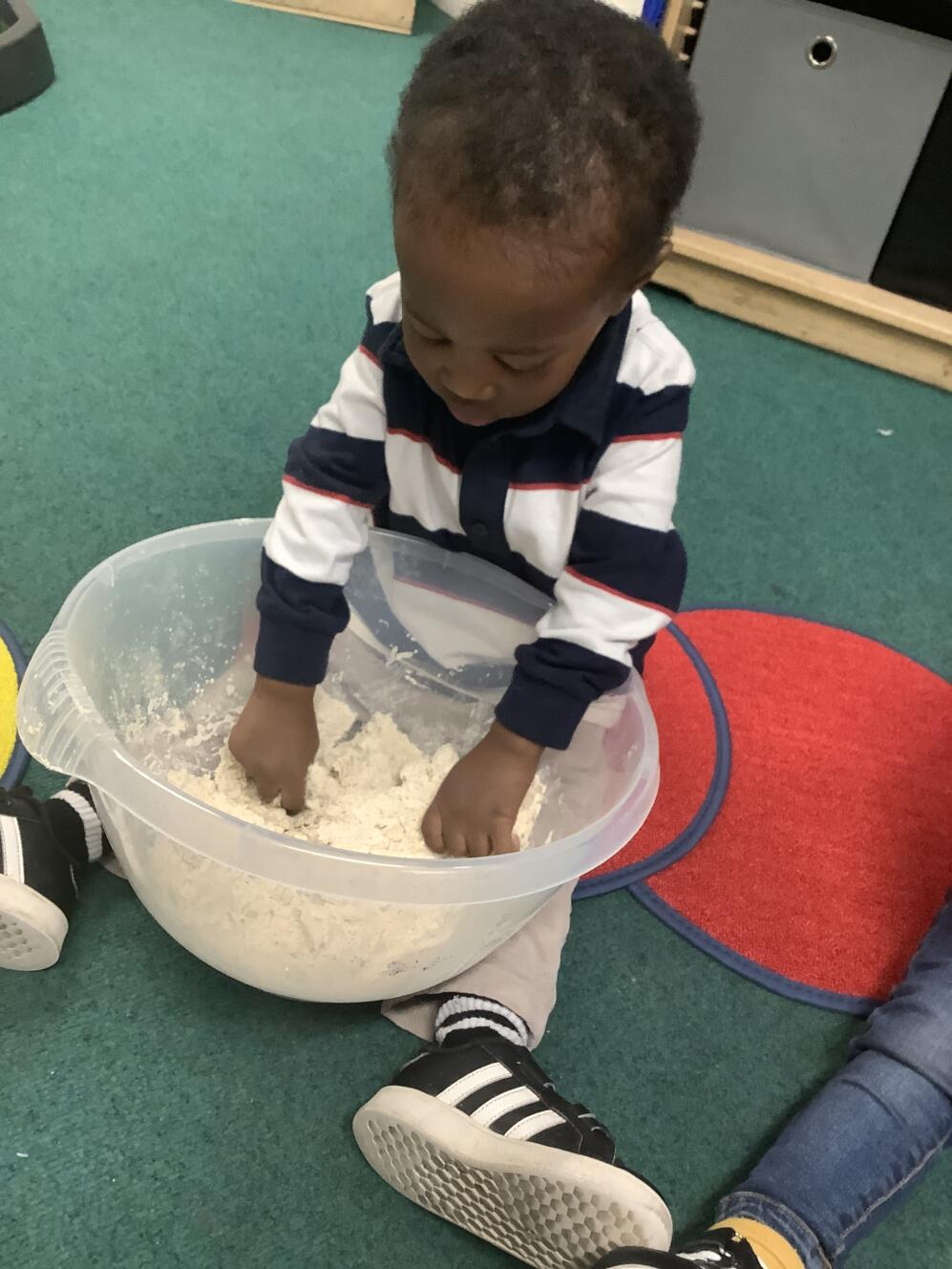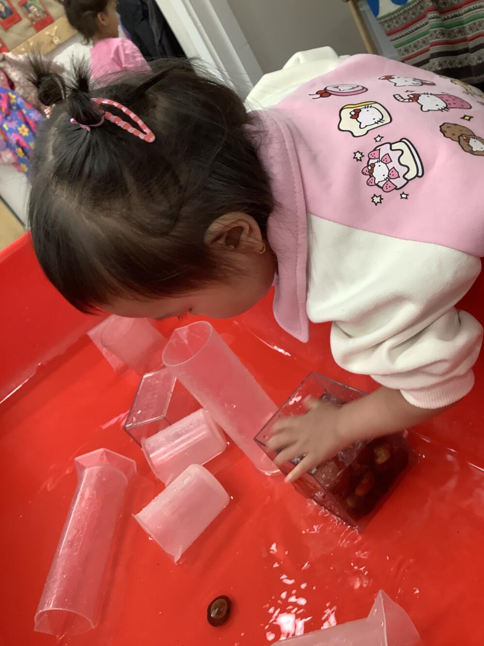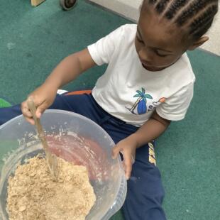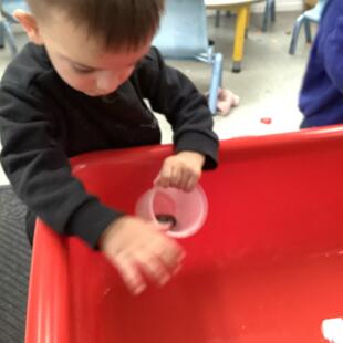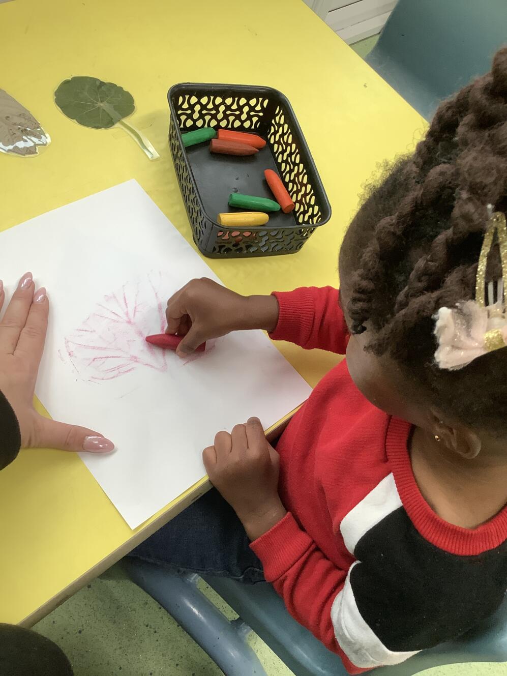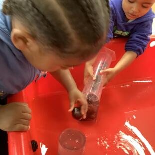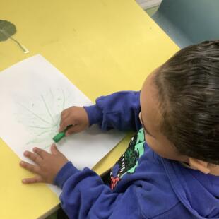 This week, Ladybird class have been exploring the natural materials that have been brought in by the parents. They have had the opportunity explore the different textures they could feel on fir cones, acorns and conkers. This has enriched the language within the setting, with lots of new vocabulary as the materials were named and described by both the children and the educators. We used the conkers in the water play, observing and using the language around sinking and floating. We also gathered several different leaves from the garden using wax crayons and paper to create rubbings which turned out amazingly.