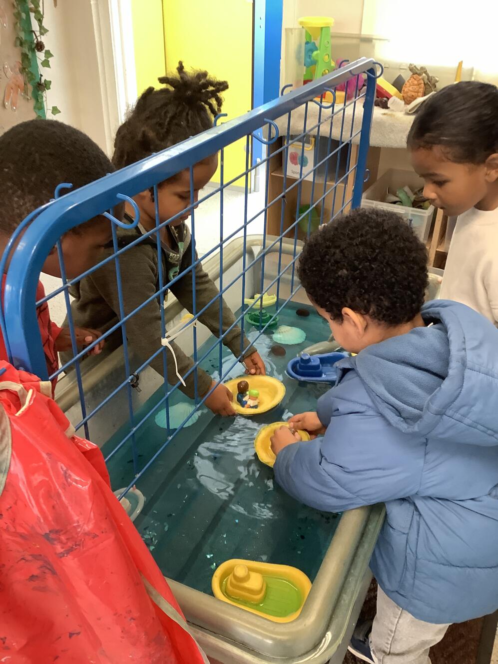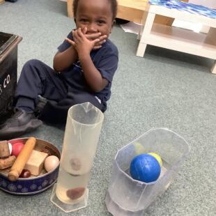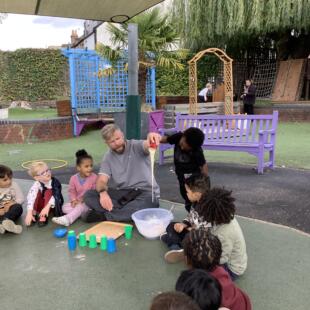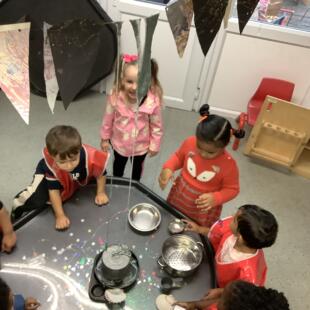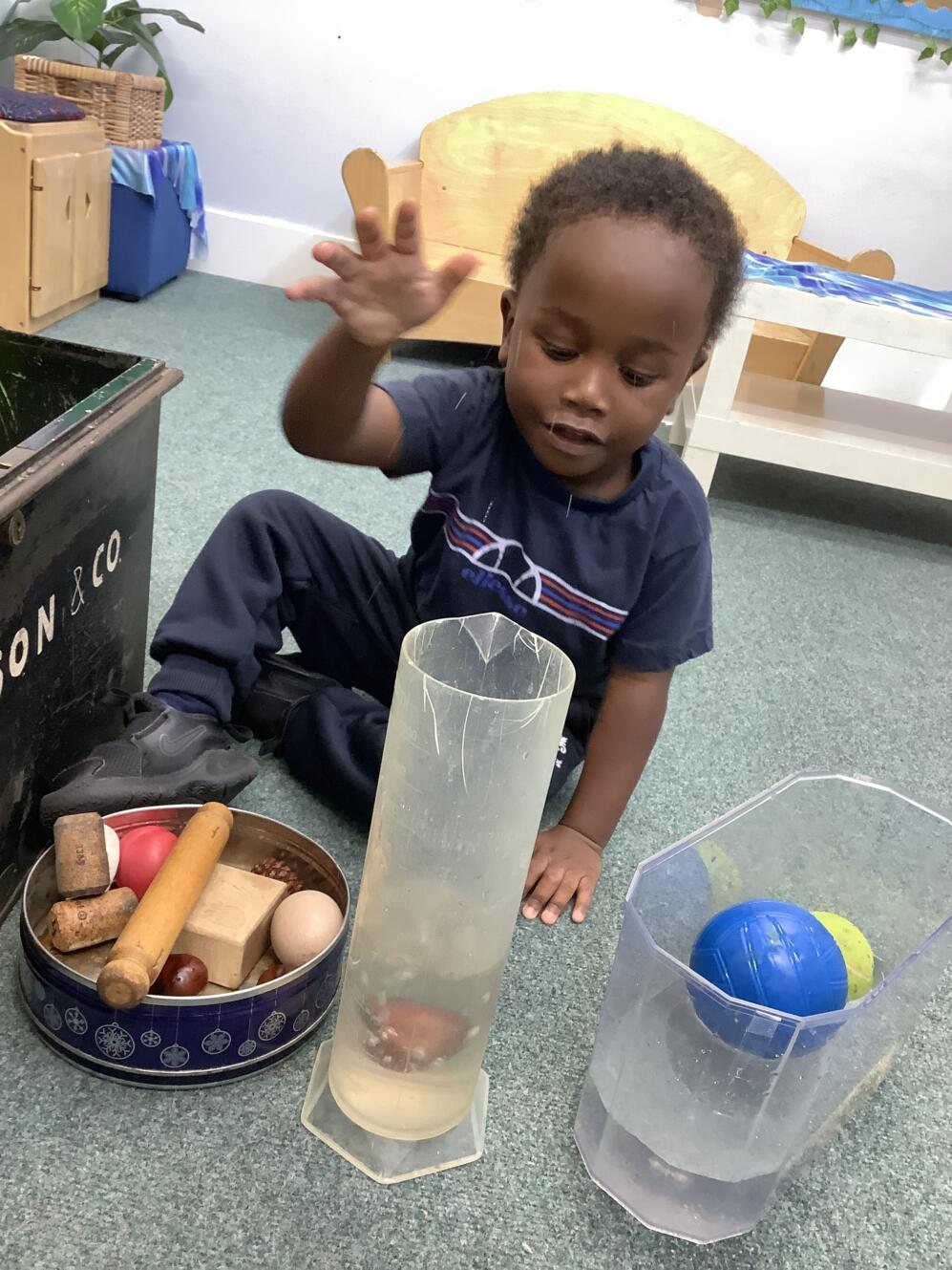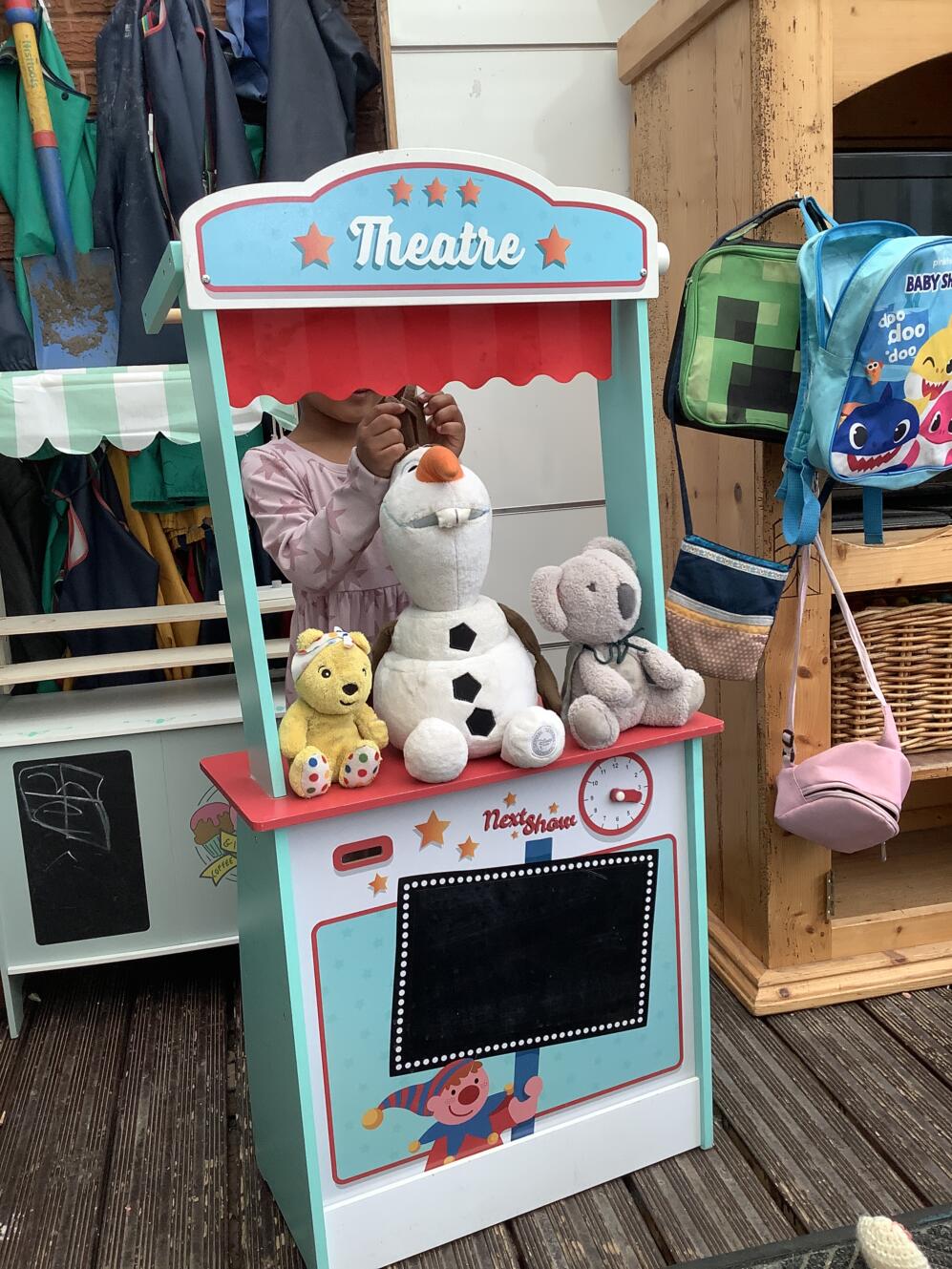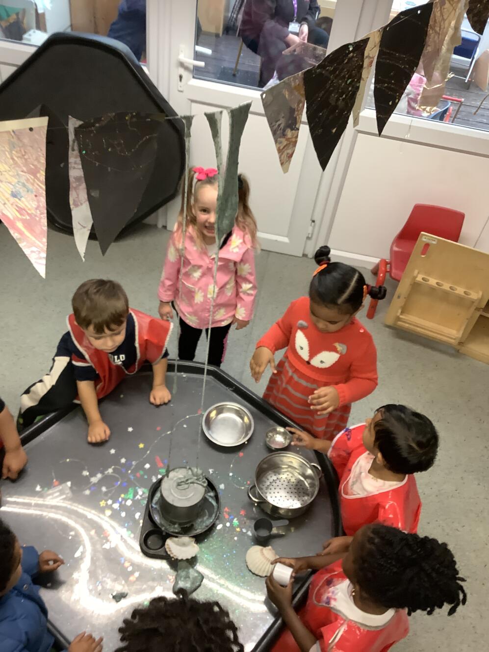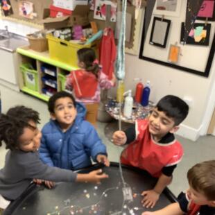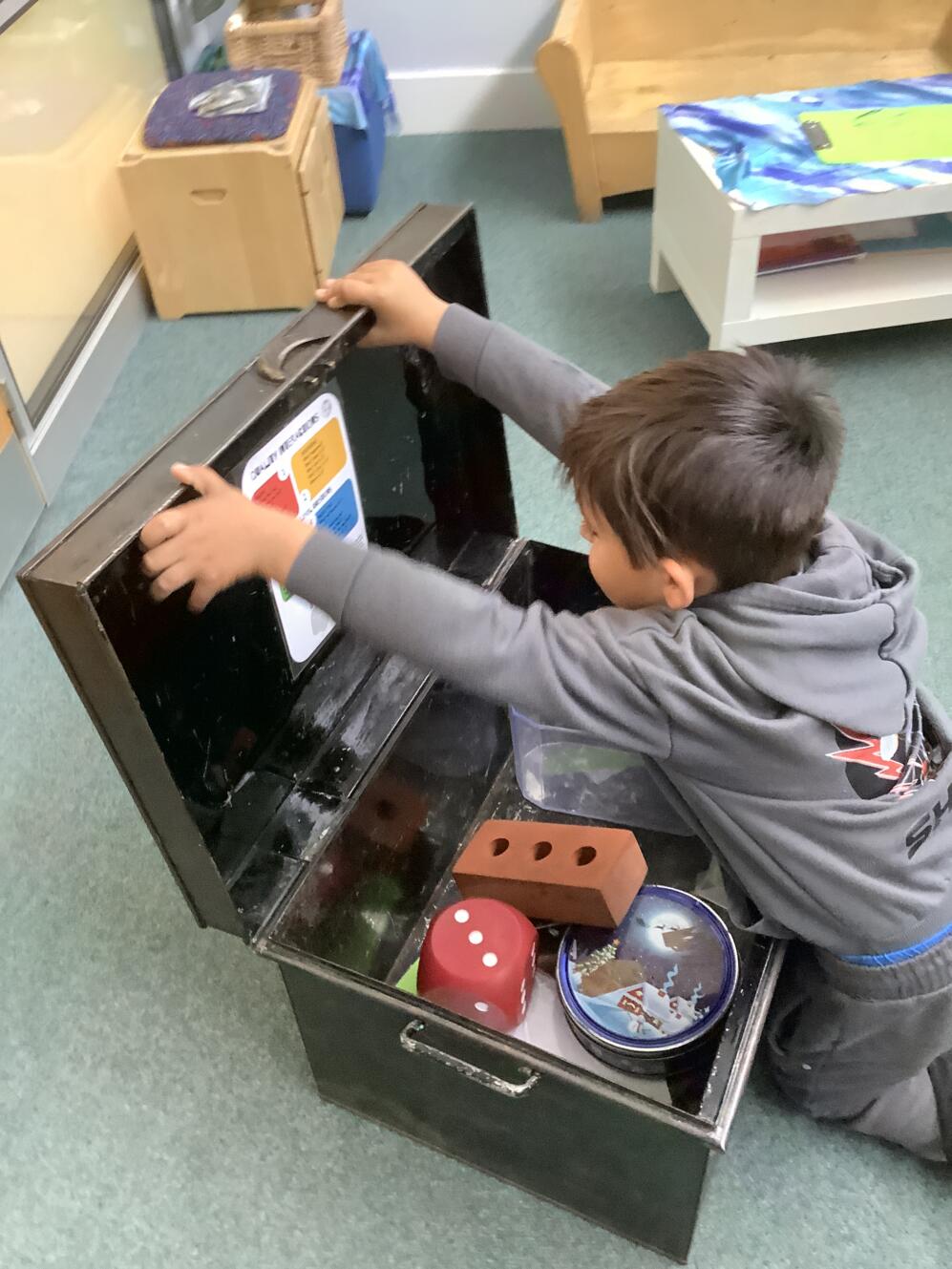 Helen’s slime factory was on top form this week. Two batches of slime meant two very different sensory experiences for the children. A wonderful talking point is created as the textures and properties of the slime change throughout the week. From a sticky, hand binding, “yucky” experience…to a stretching, rubbery, bouncing ball; the slime engages children throughout the week and provides a shared experience, quiet independent exploration and often energetic, somewhat raucous expressions of shock and surprise!