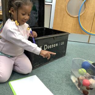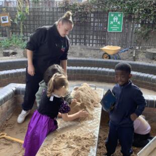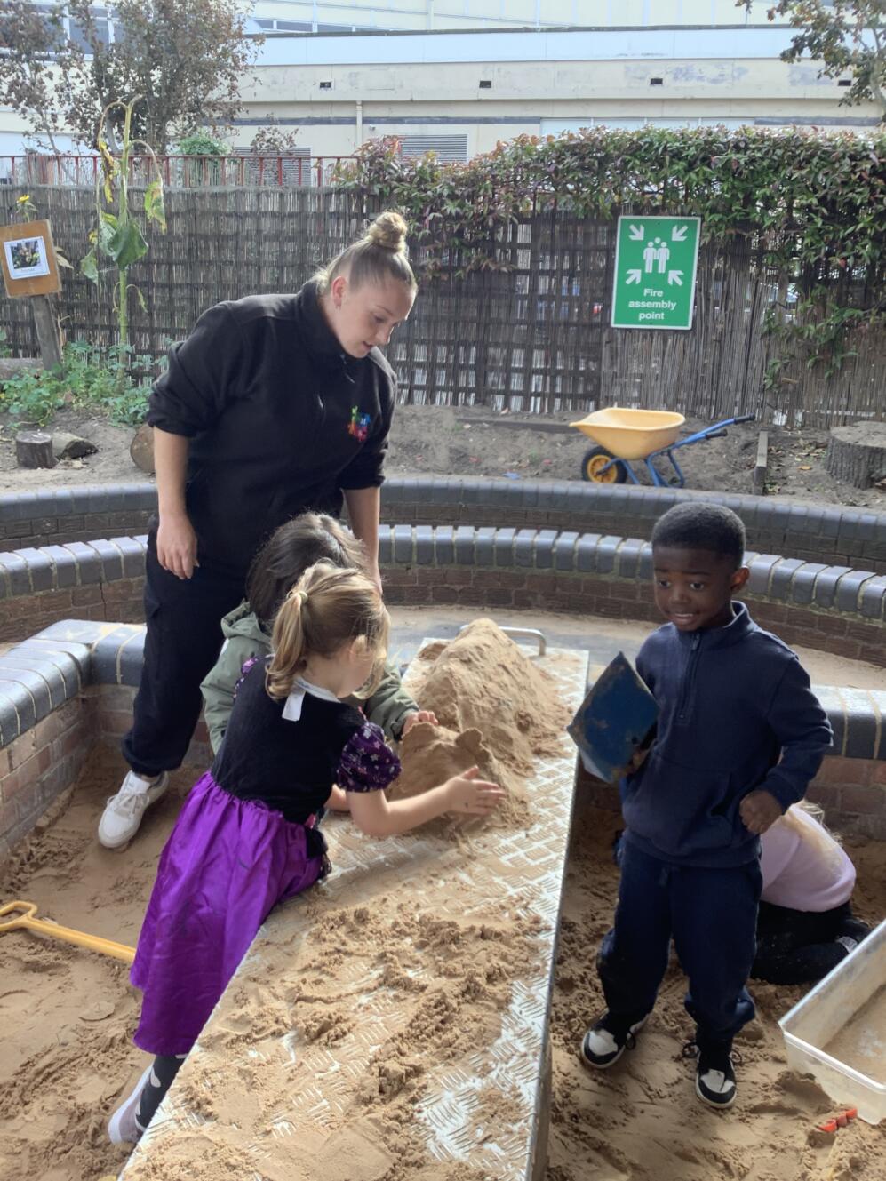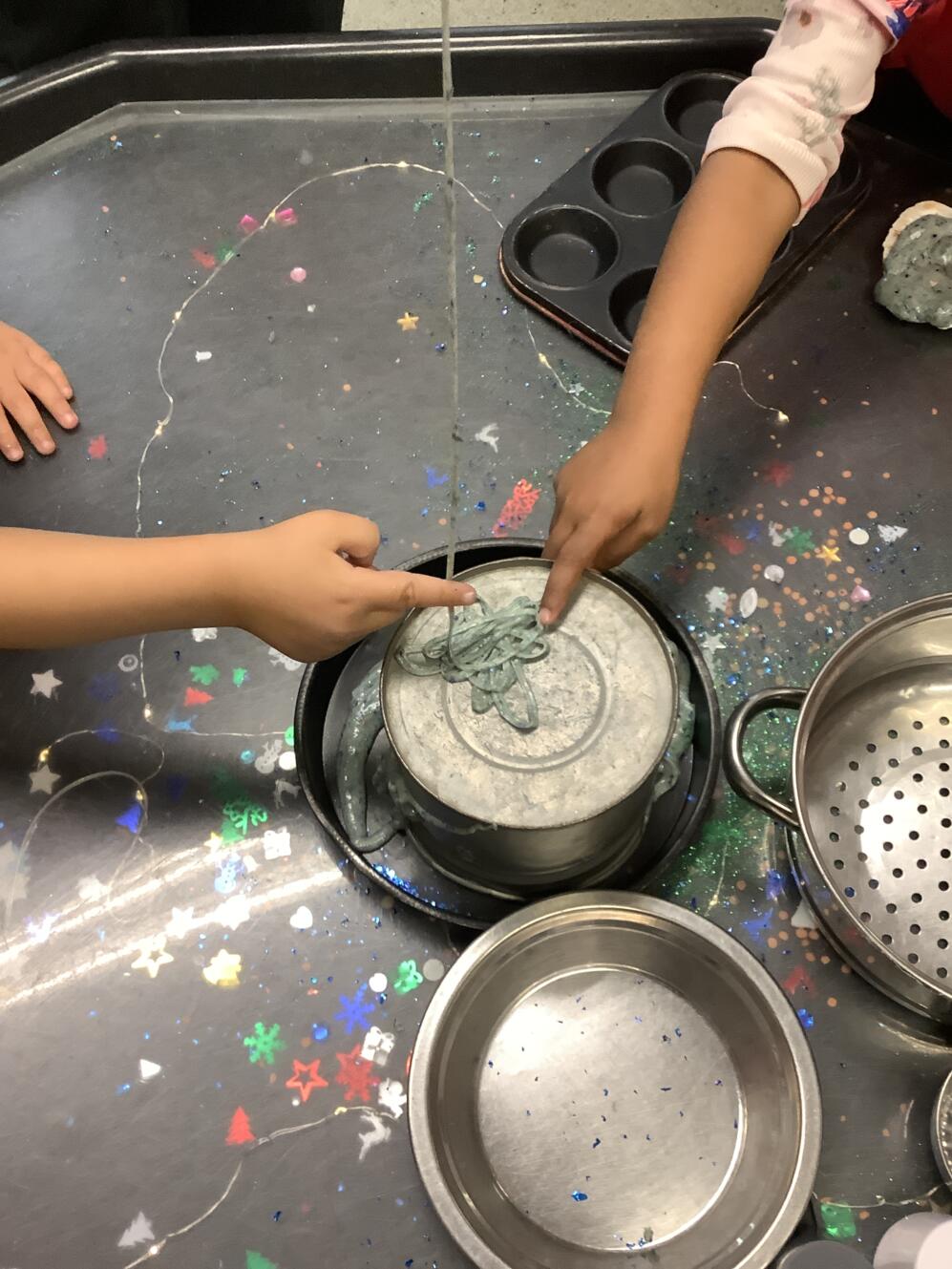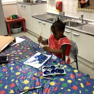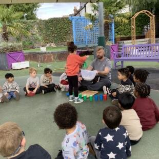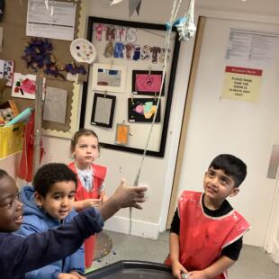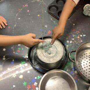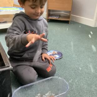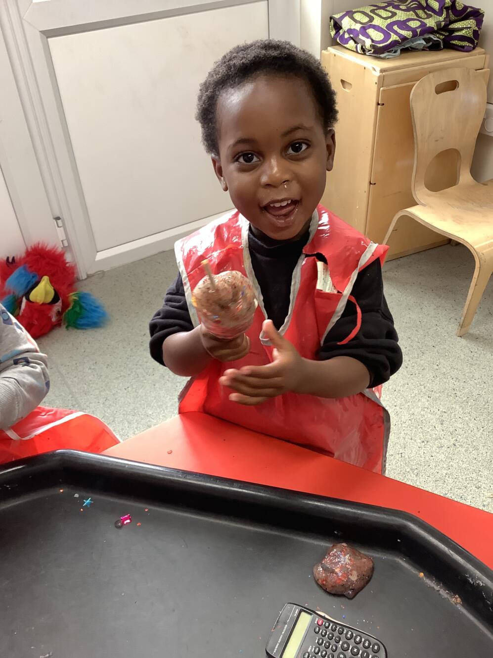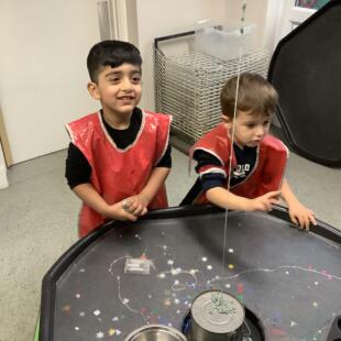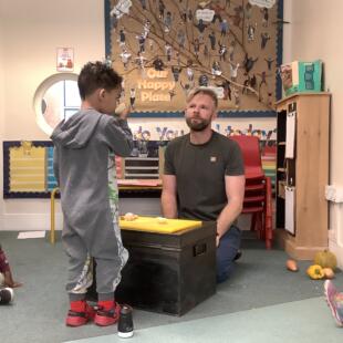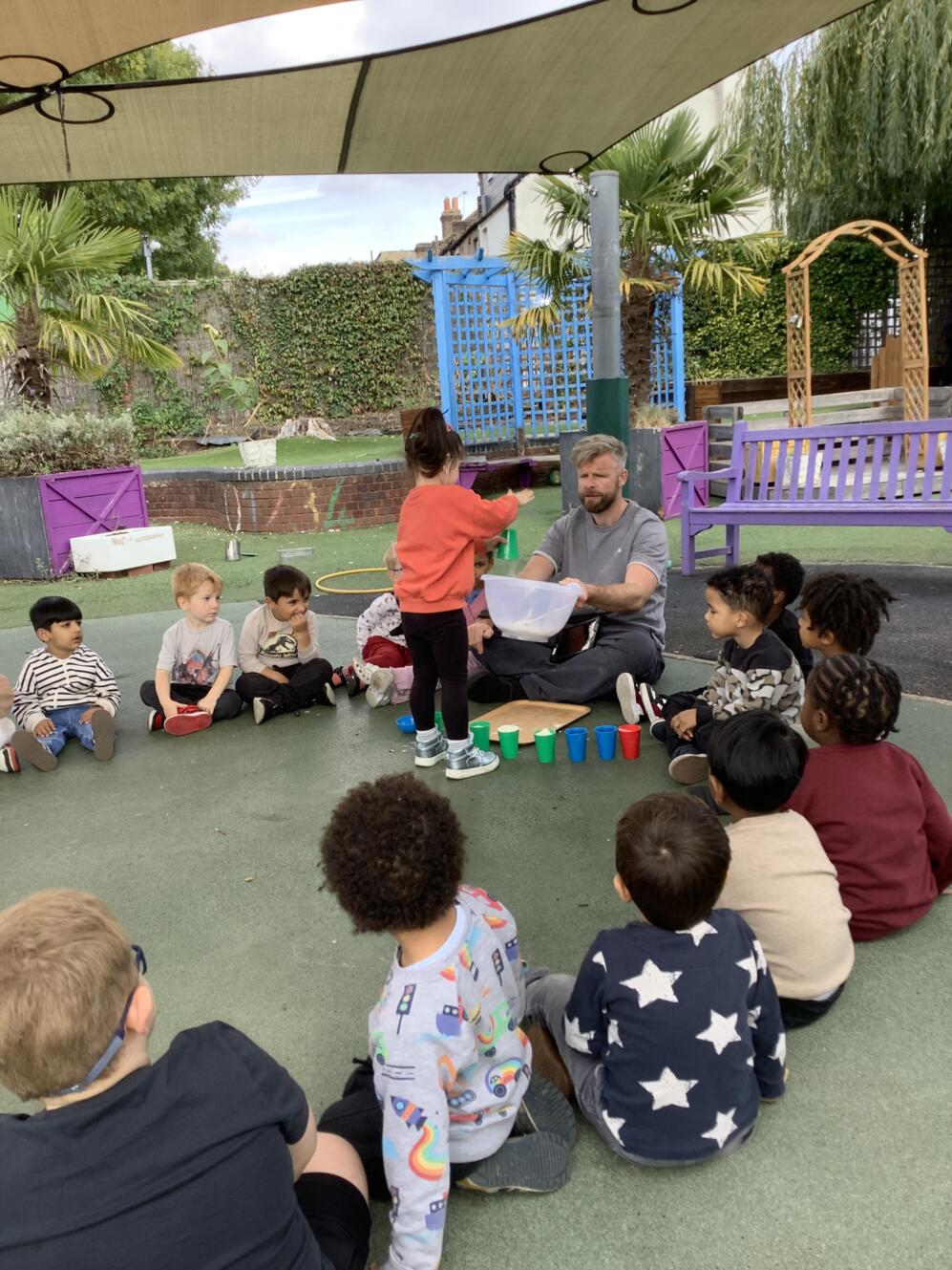 Helen’s slime factory was on top form this week. Two batches of slime meant two very different sensory experiences for the children. A wonderful talking point is created as the textures and properties of the slime change throughout the week. From a sticky, hand binding, “yucky” experience…to a stretching, rubbery, bouncing ball; the slime engages children throughout the week and provides a shared experience, quiet independent exploration and often energetic, somewhat raucous expressions of shock and surprise!