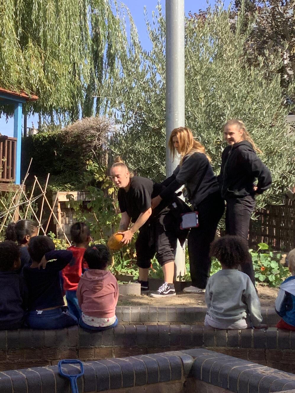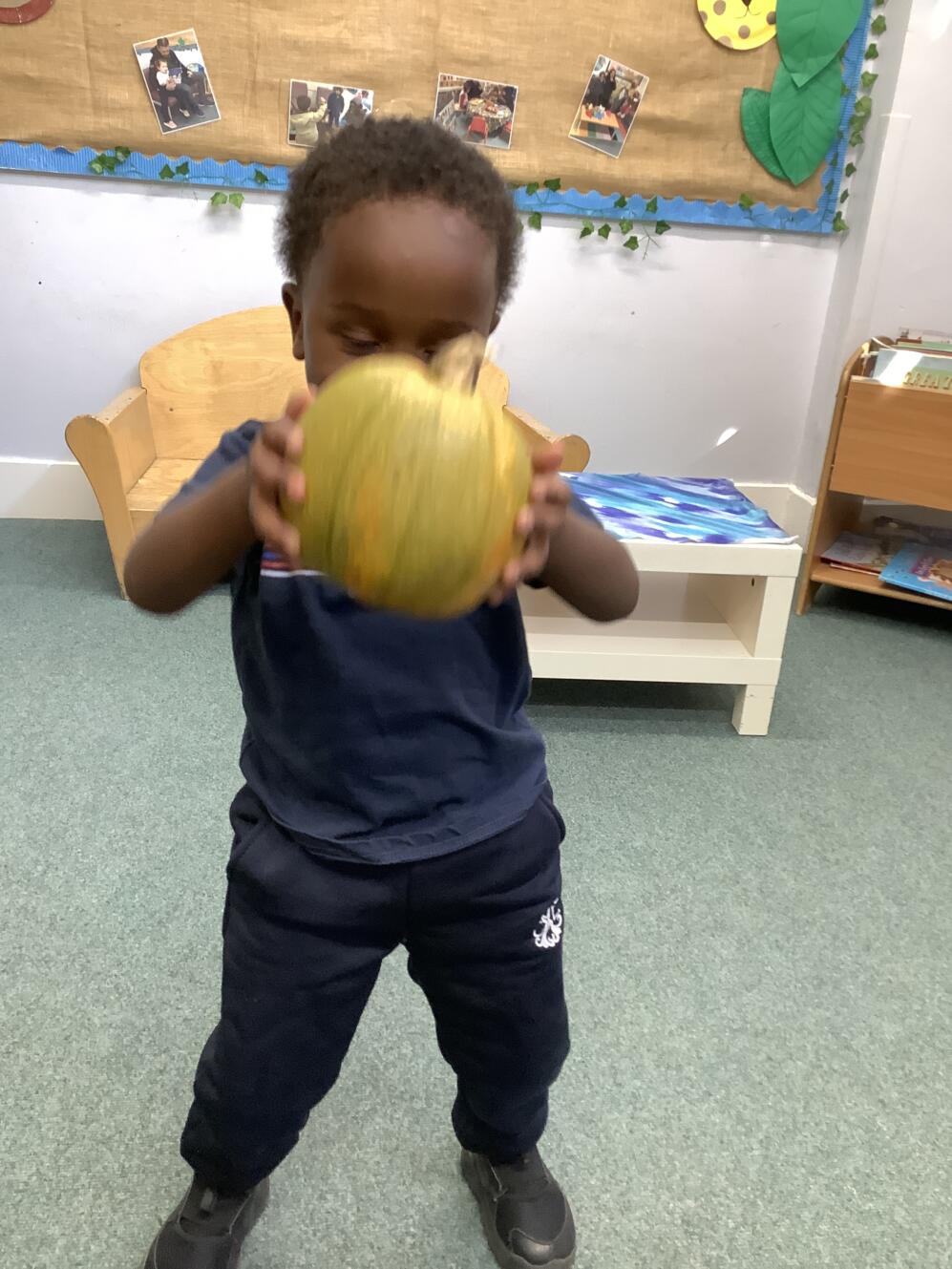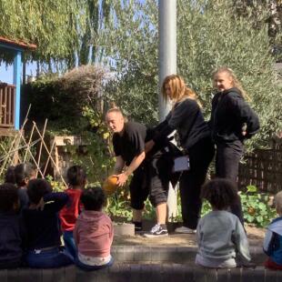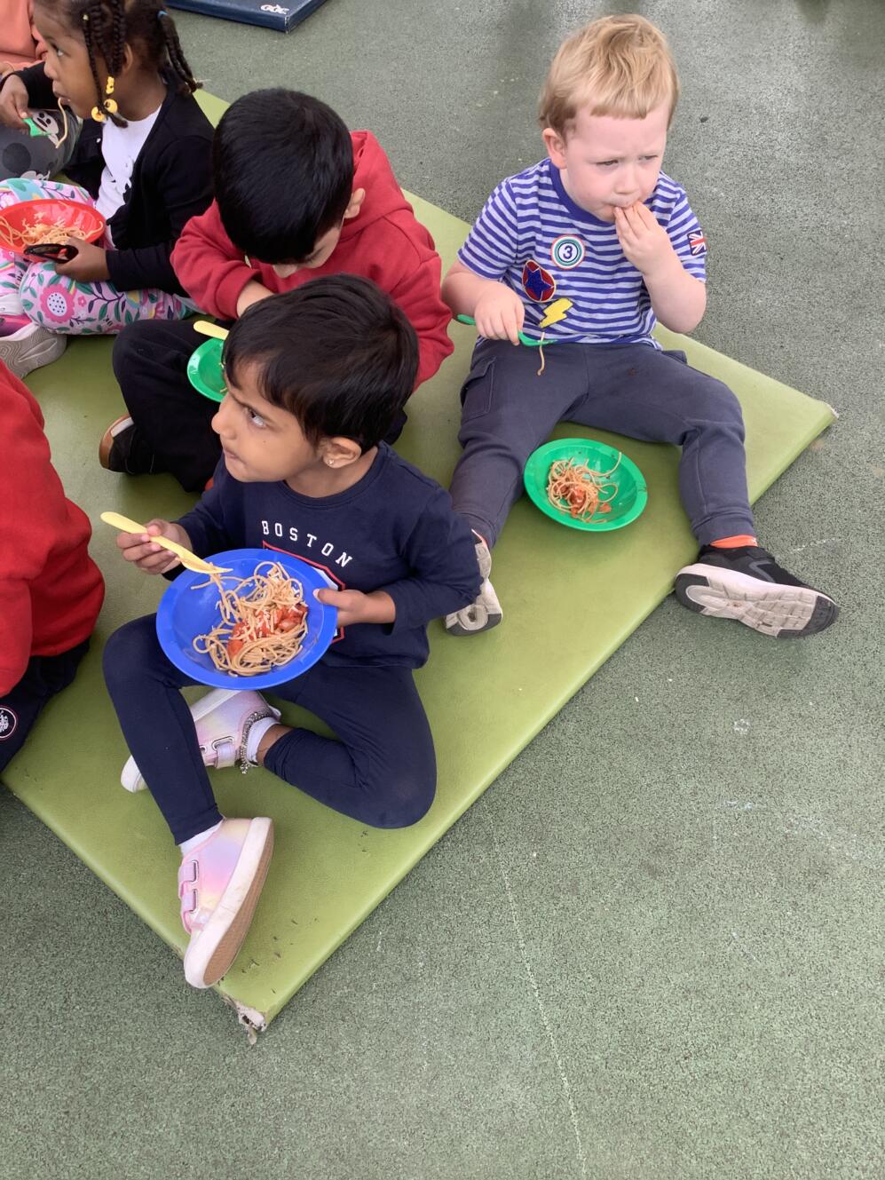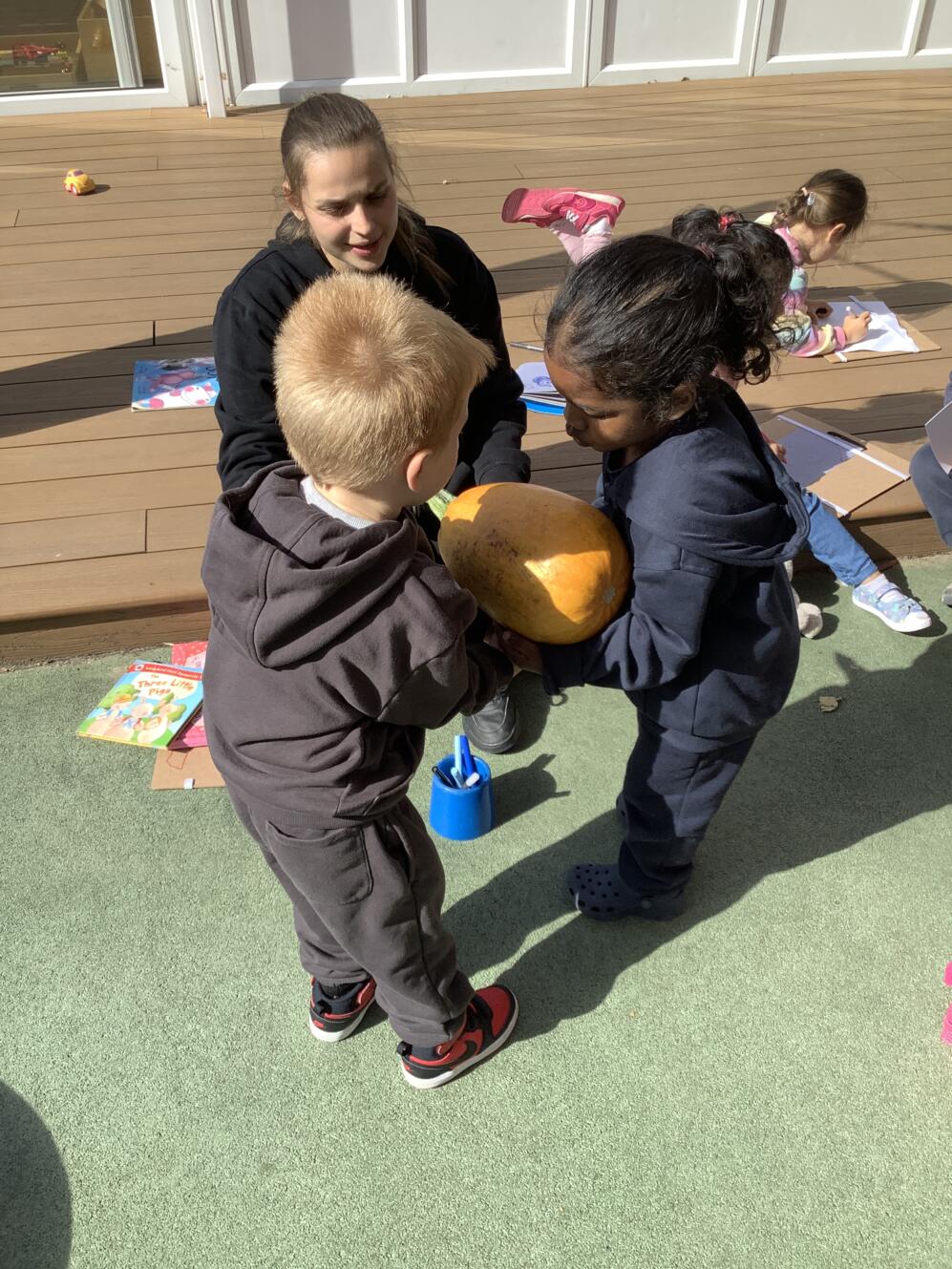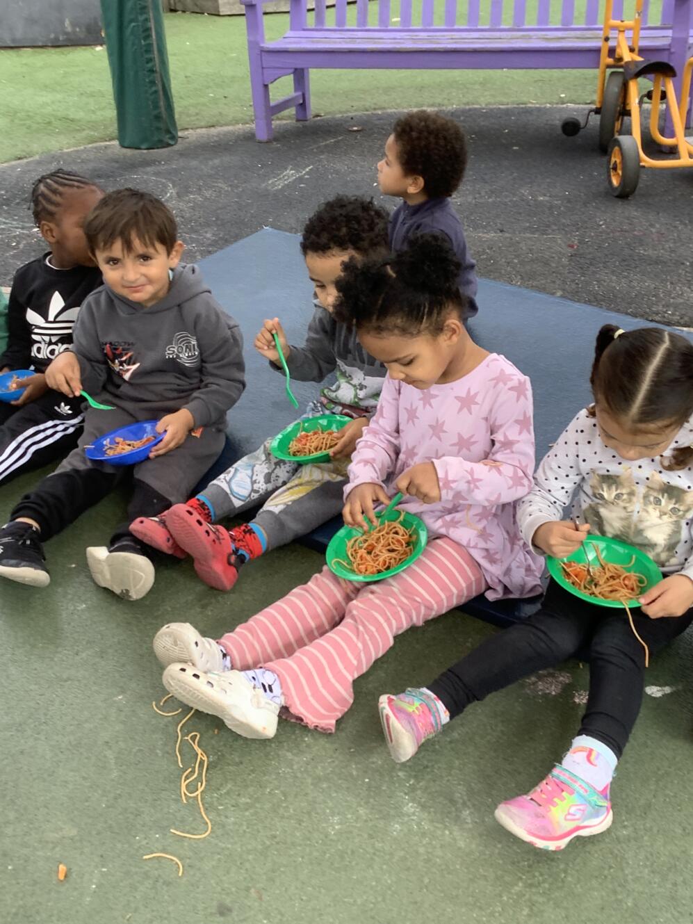 Having picked our two surviving pumpkins last week, it was cooking and feasting time! In years gone by, teachers have attempted pumpkin soup, pumpkin bites and pumpkin pies…with limited success…this year it was pumpkin spaghetti time. In group time, the pumpkin’s were handled, chopped, deseeded and inspected by the children. The slimy seeds were passed around, counted and placed to dry for next year’s planting and the next generation of Thornton Heath pumpkins. Next, the children observed onion being chopped before having a chance to smell and handle the powerful vegetable! Little fingers then peeled garlic cloves, another feat for the senses and valuable exercise for growing hands and digits. We sorted the remaining ingredients of spaghetti, salt, oil, sweet peppers and passata before it was off to the kitchen. Many children observed as the ingredients were combined and cooked before it was feast time! It was thumbs up all round and a valuable experience, as our fledgling scientists grow to understand life cycles from seed, to plant and fruit; not as passive observers or listeners but as active participants.