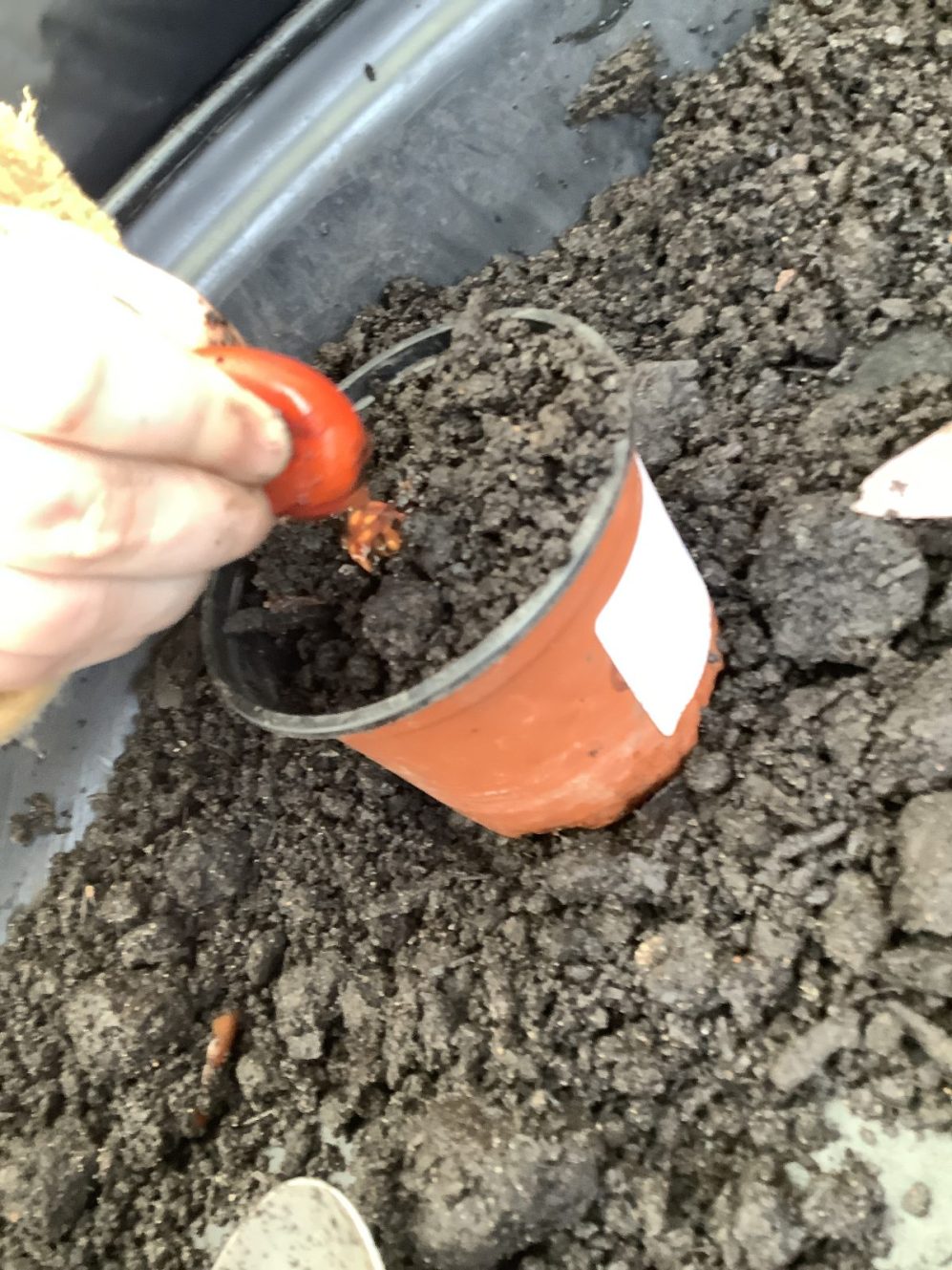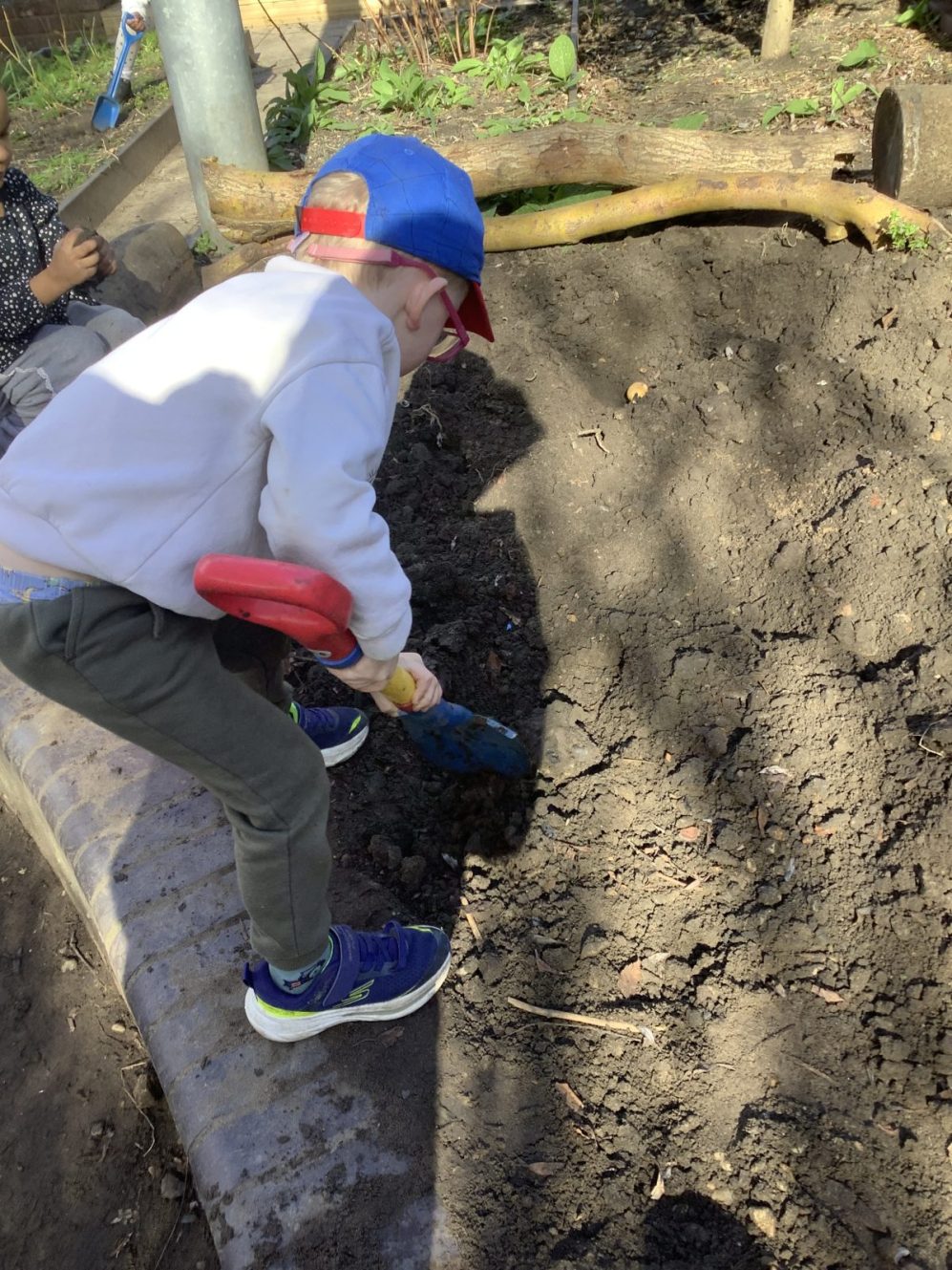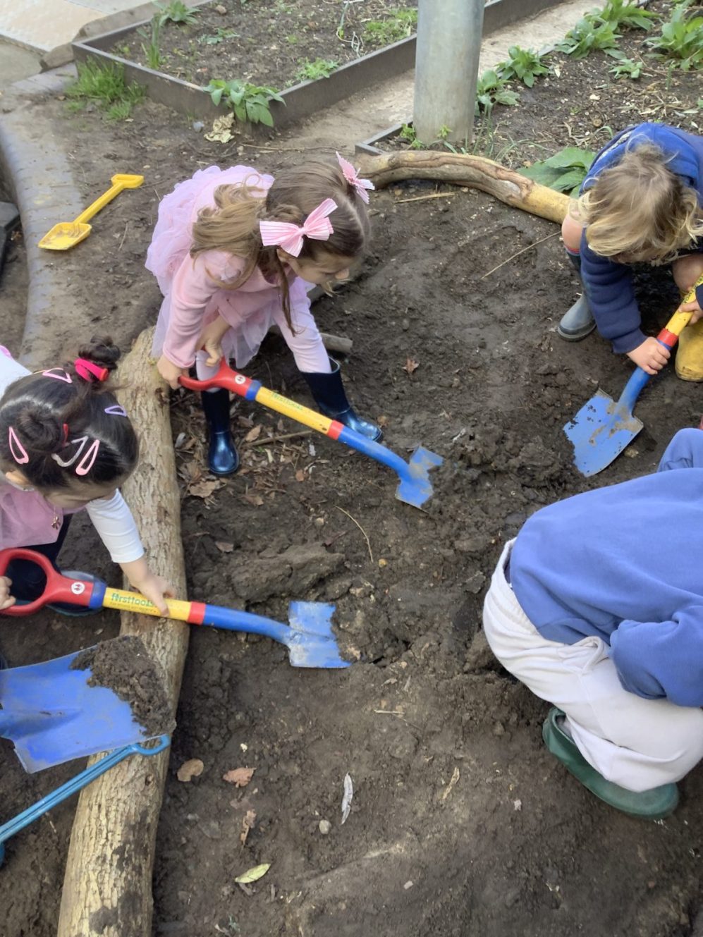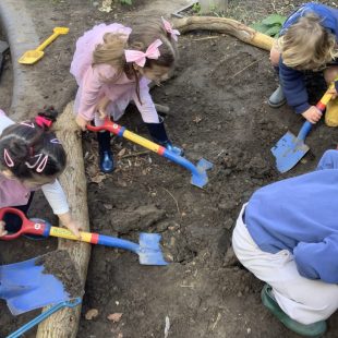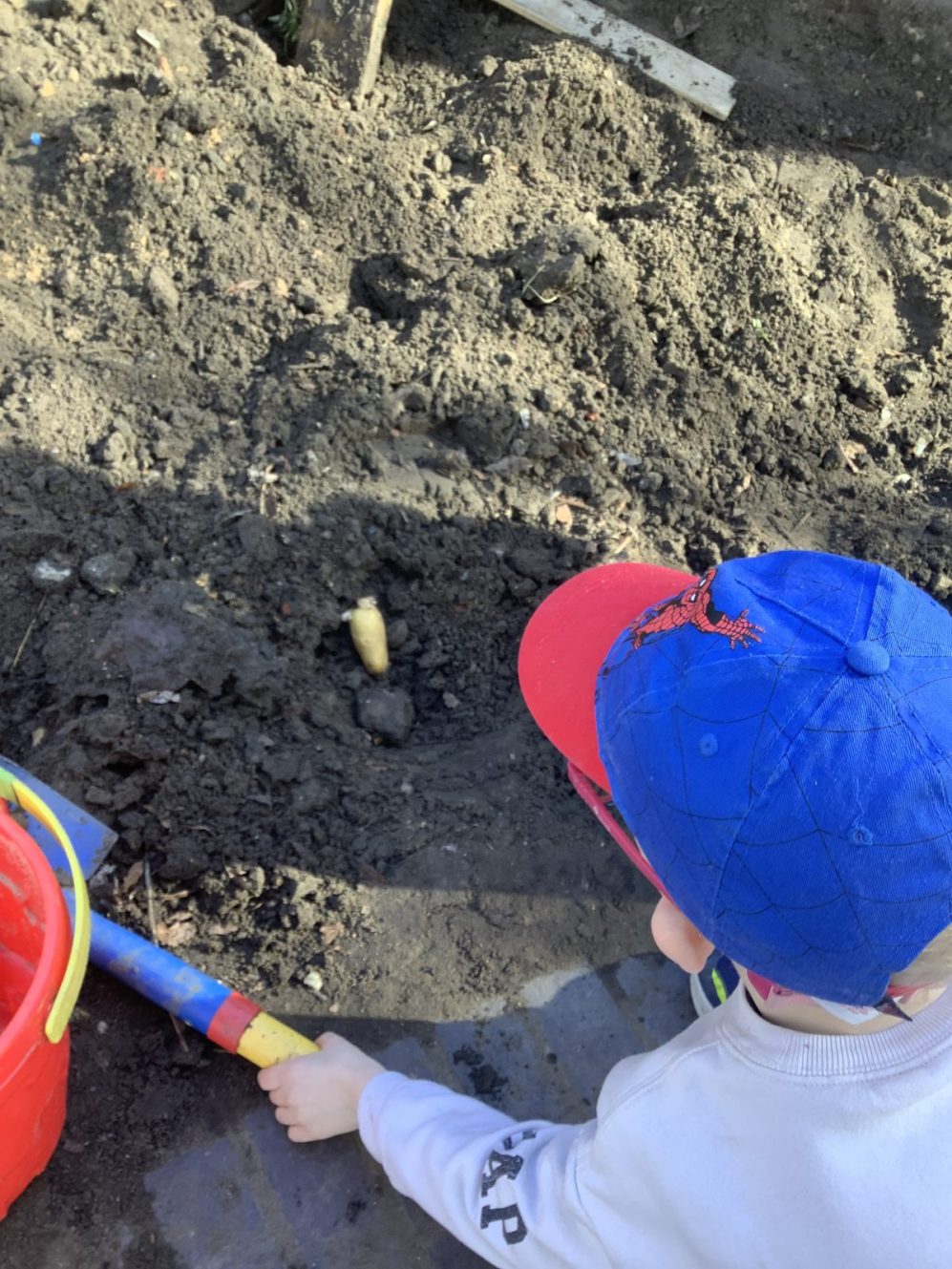 23 chafer beetle grubs were discovered in our compost bin. The children were fascinated as they handled them gently before rehousing them in a planter away from our seedlings.  Their wriggling, translucent bodies and sharp looking mouth parts left many unnerved, whilst others were delighted to see so many baby creatures in our garden. We learnt some mums do not look after their young, laying eggs and leaving their offspring to fend for themselves…luckily we were on hand to save them from our busy soil scooping!