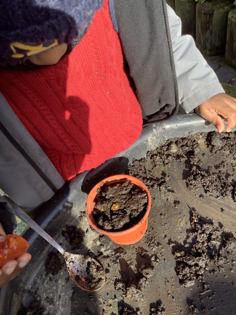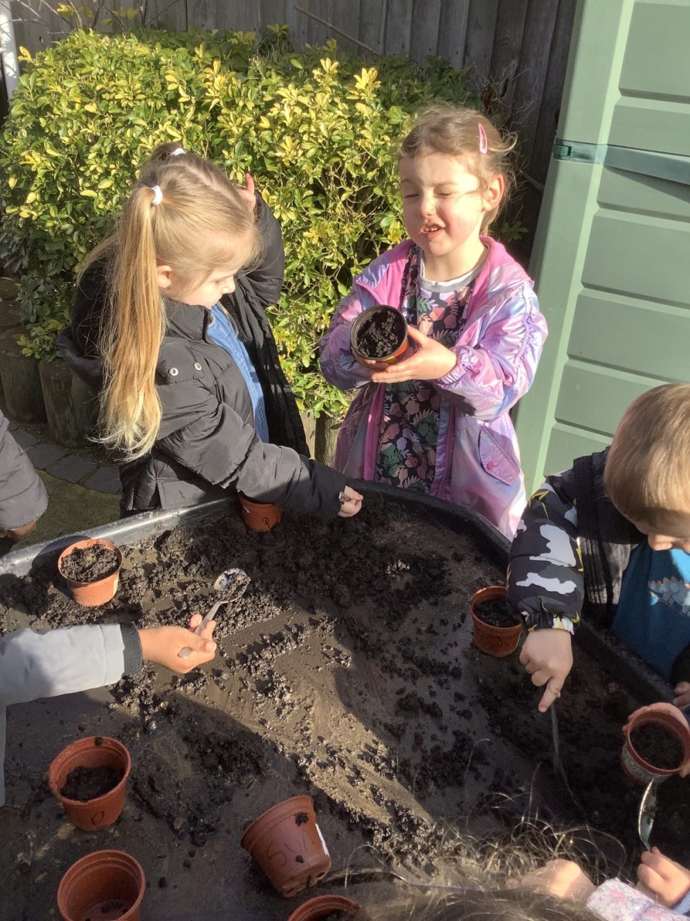 We have had our first seeds germinate, all of them sunflowers. We have beans, tomatoes and pumpkins yet to do so…fingers crossed Monday morning will be accompanied by a plethora of seedlings.  All pots are watered and sheltered from any late frosts beneath our sheltered play area.