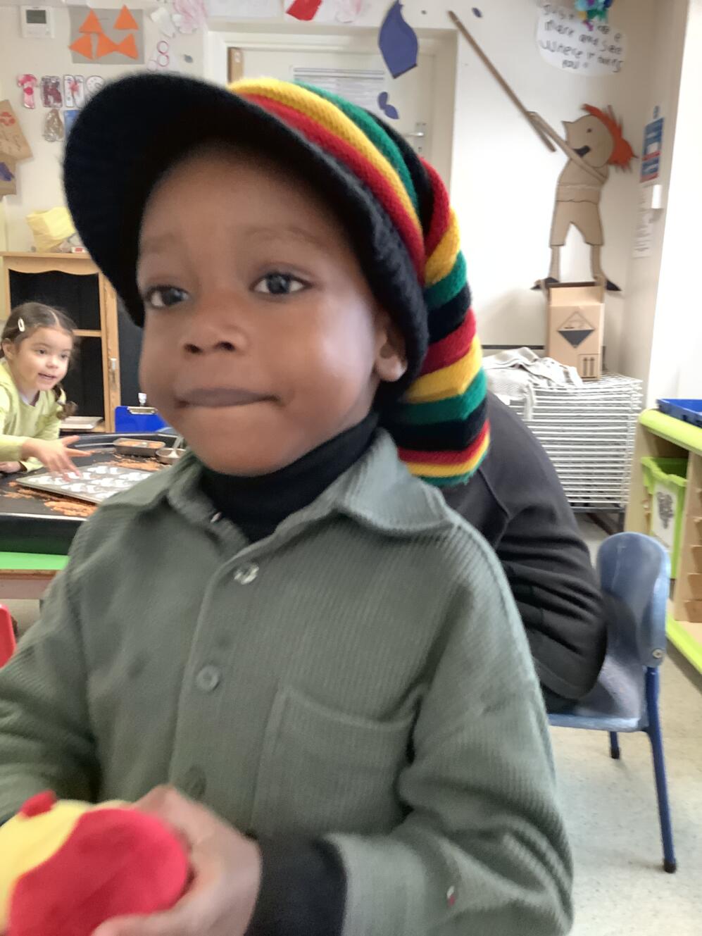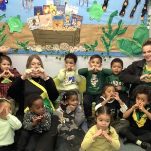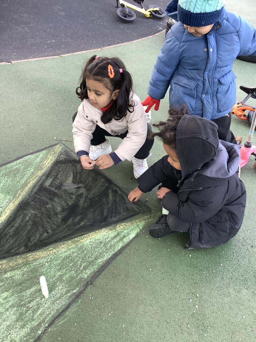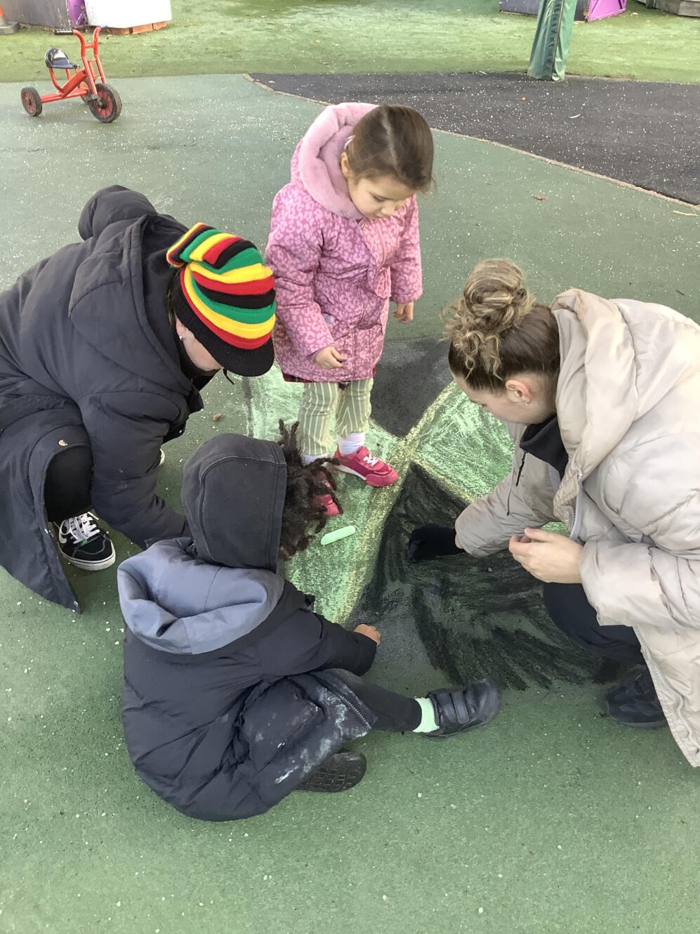 Today, the children, staff and families at Thornton Heath Nursery School showed wonderful solidarity and kindness. Everyone was invited to wear the colours of the Jamaican flag and make a donation towards the borough-wide fundraising effort. The nursery was filled with the uplifting sounds of Caribbean music, and the children enjoyed using their mark-making skills to create large Jamaican flags in our outdoor learning area.
