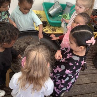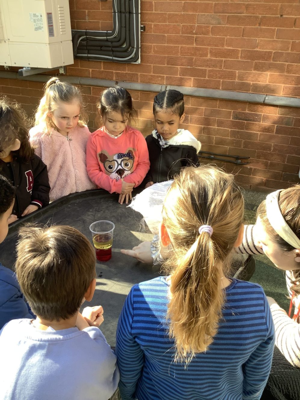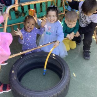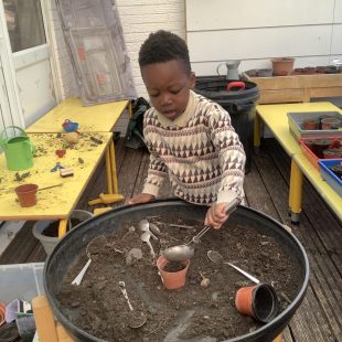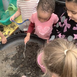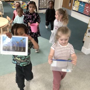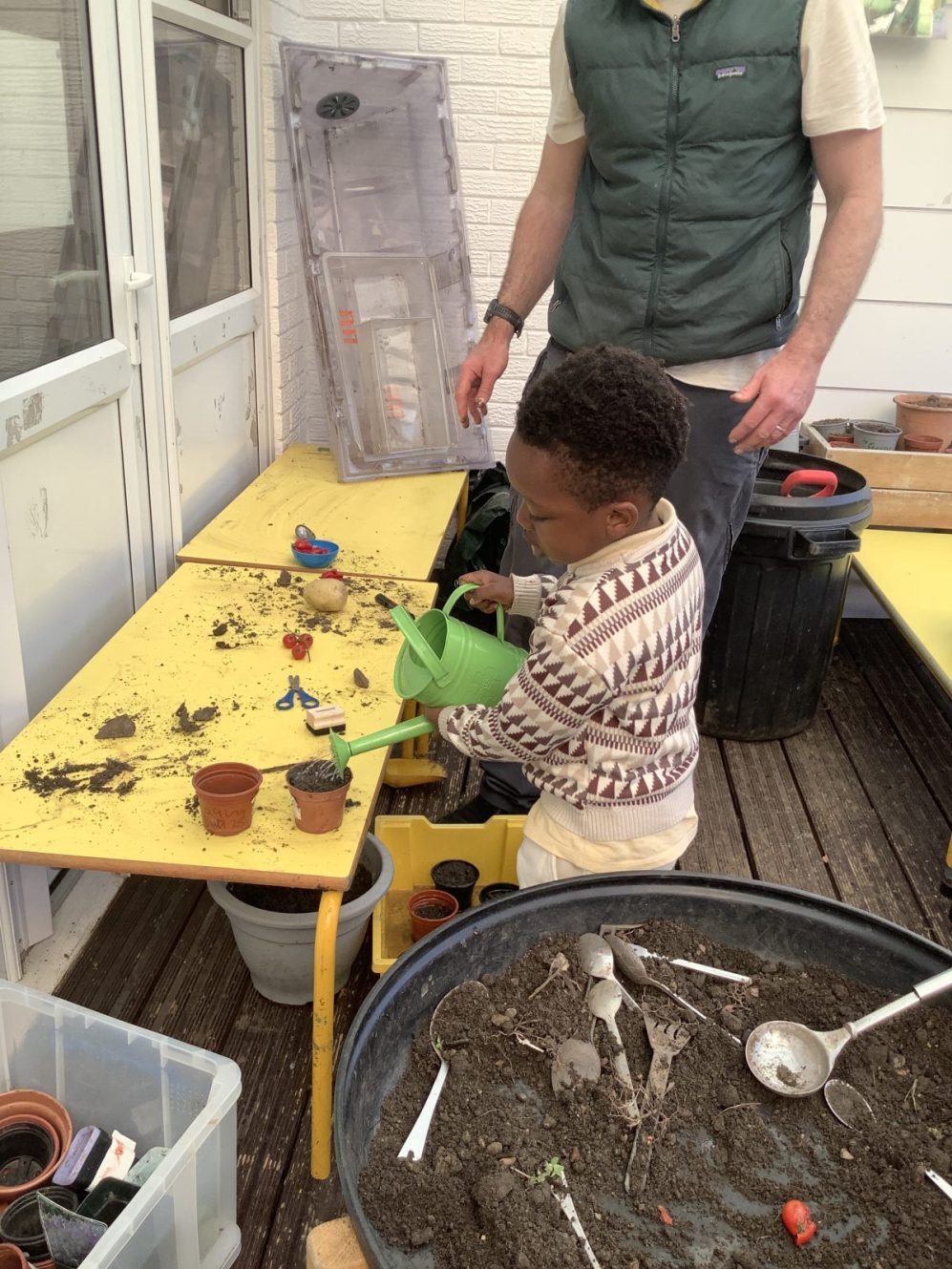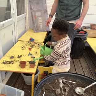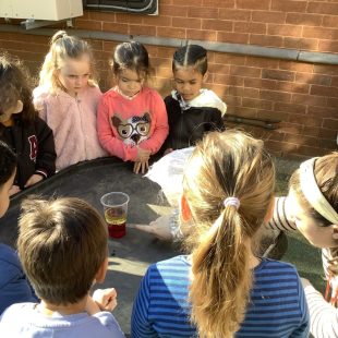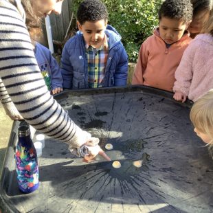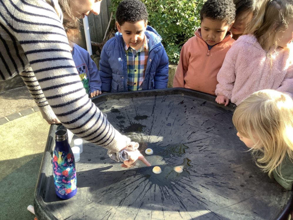We were joined in the week by Arlo’s mum who, inspired by much talk about the bubbles in our bubble bread, brought along some bubbly experiments of her own. The children marvelled as they observed a gently erupting lava lamp and a slightly more violent explosion as lids and pots launched themselves all over the garden…all thanks to the power of bubbles!